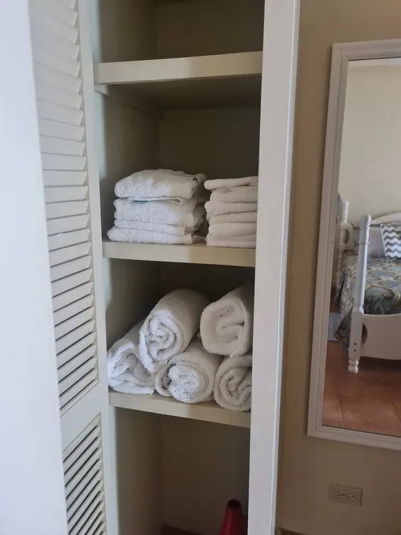 Hay un garaje en la planta baja donde se encuentra la lavadora y secadora y almacenamiento adicional. Persianas contra huracanes se han instalado haciendo de este condominio muy fácil de cerrar y salir. También sería grande como un alquiler, hay una piscina muy grande directamente en frente del edificio y la playa de Sandy Hill Bay es un paseo fácil de distancia, preciosa para nadar y bucear. Las cuotas de HOA son asequibles y es un pequeño gran barrio.