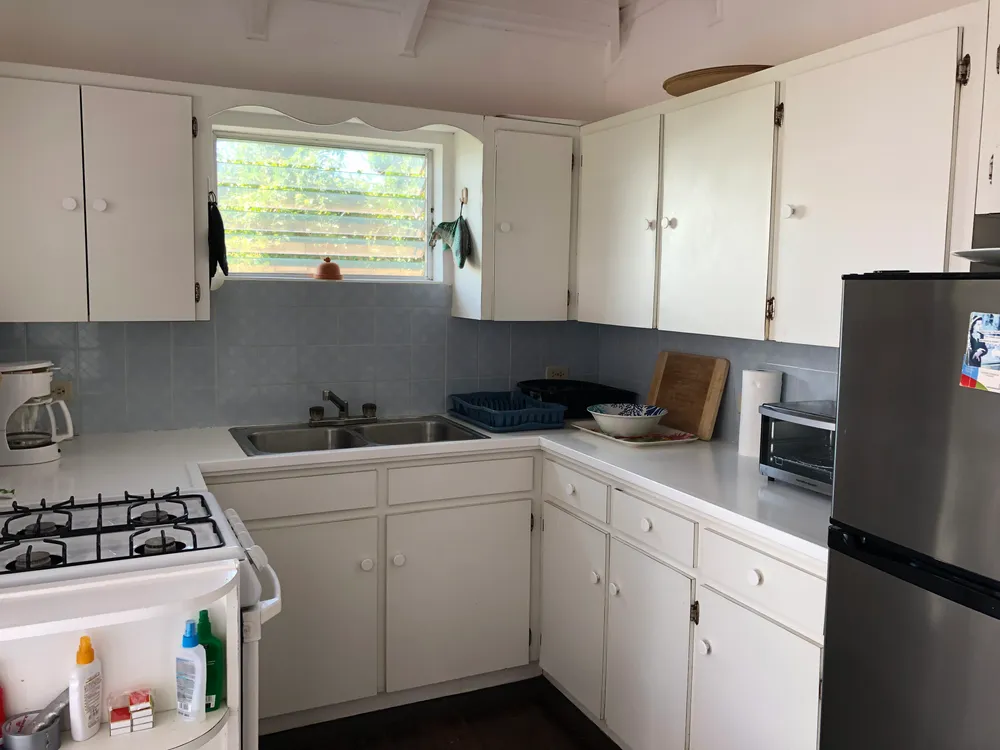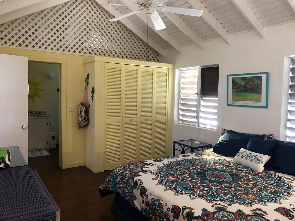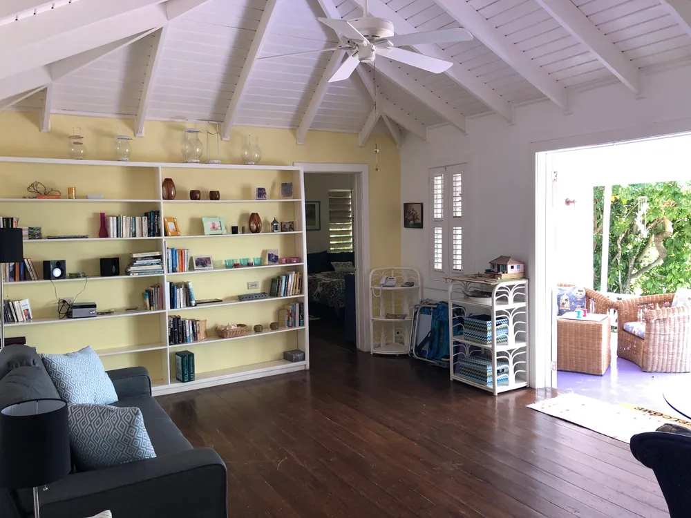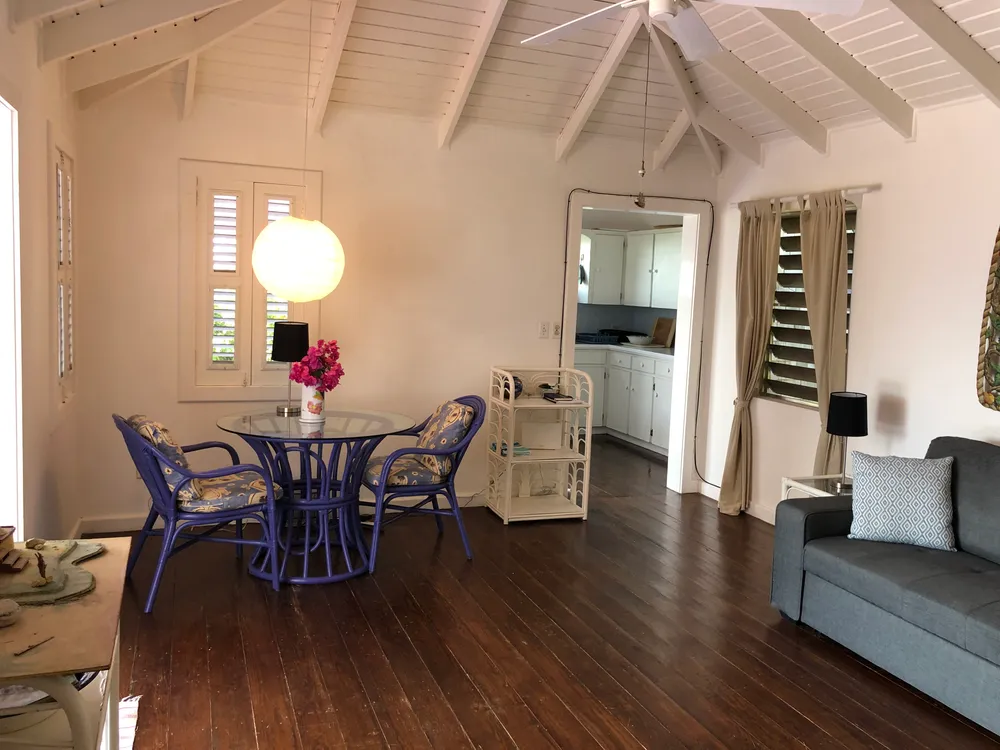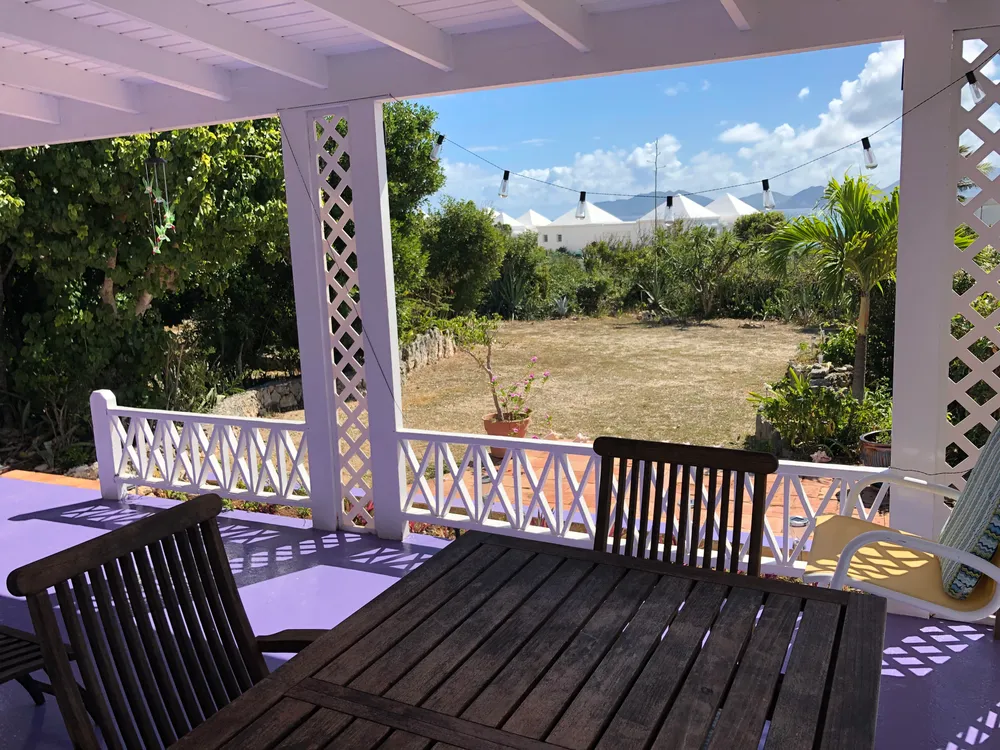 Una encantadora casa situada en el extremo del barrio residencial deseable de Cul de Sac. Esta casa de un dormitorio es perfecto si usted está buscando para poseer un sin problemas, a su vez propiedad clave en Anguila. El lote grande tiene un gran potencial para edificios adicionales o ad ons a la casa principal. El lote está completamente vallada con jardines maduros y tropicales y la cubierta al aire libre cuenta con excelentes vistas de San Martín y Saba. La cocina tiene una estufa de gas, nevera y un montón de espacio en el armario. El actual propietario era un servicio de catering por lo que la cocina está bien equipada. El salón tiene techos altos y hermosos pisos de madera brasileña. El dormitorio, con un cuarto de baño, tiene un amplio espacio para la cama king size, armario grande, y un montón de espacio en el suelo. Esta casa tiene un excelente historial de alquiler, y también podría generar ingresos como una propiedad de inversión. La casa fue diseñada por un arquitecto que entiende la zona, y ha resistido todos los huracanes y tormentas tropicales desde que fue construido hace unos 50 años. Es robusto en el diseño y la construcción y se sienta en una cisterna por lo que tiene su propio suministro de agua.