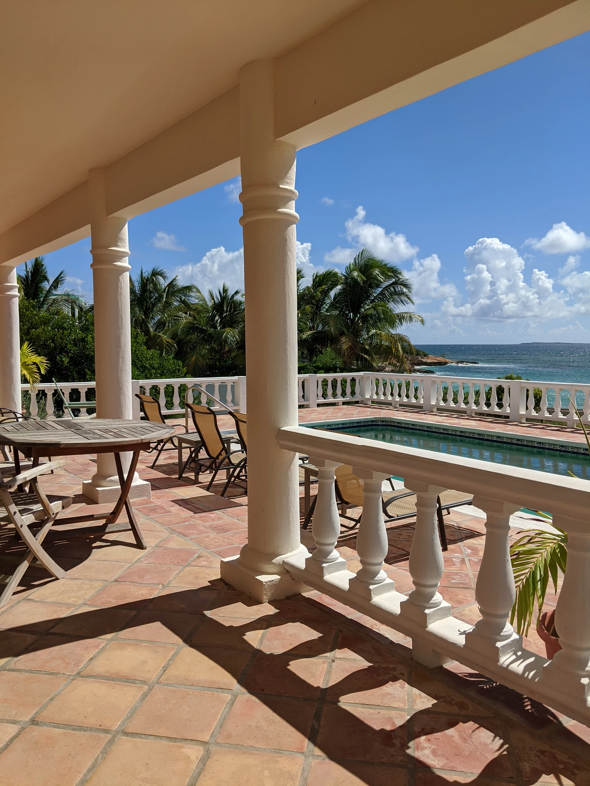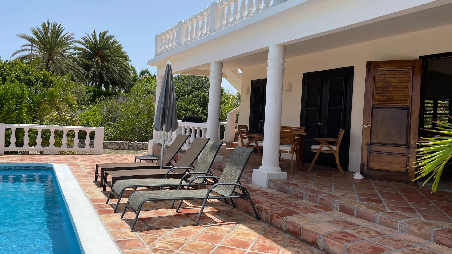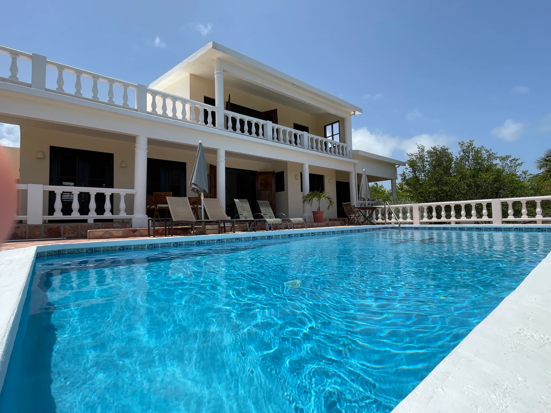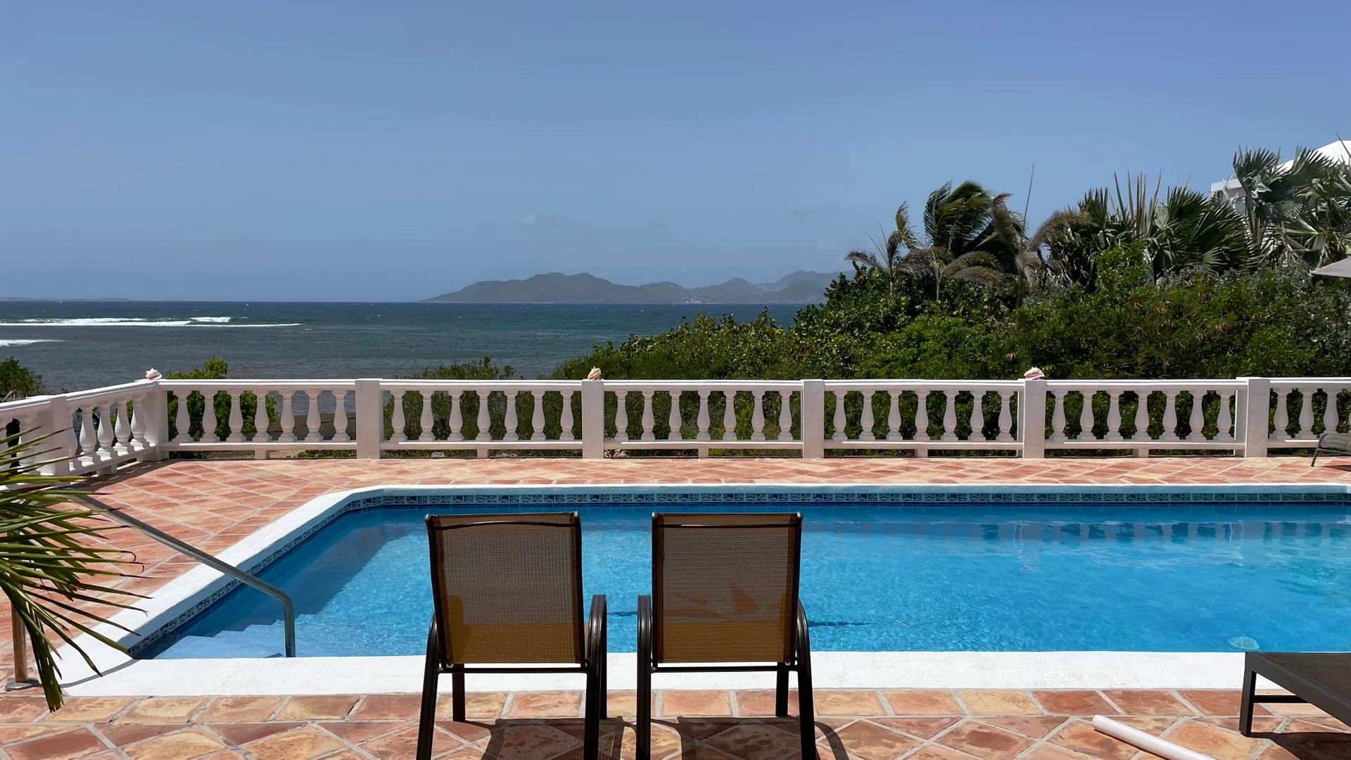 There are 3 bedrooms, 2 full baths and a 1/2 bath. A lovely pool and large deck offers spectacular views of St. Maarten & other neighboring islands. The large living room/kitchen/dining area has double louver door opening to the pool deck. The large windows and doors provide lots of light into the living and kitchen area.