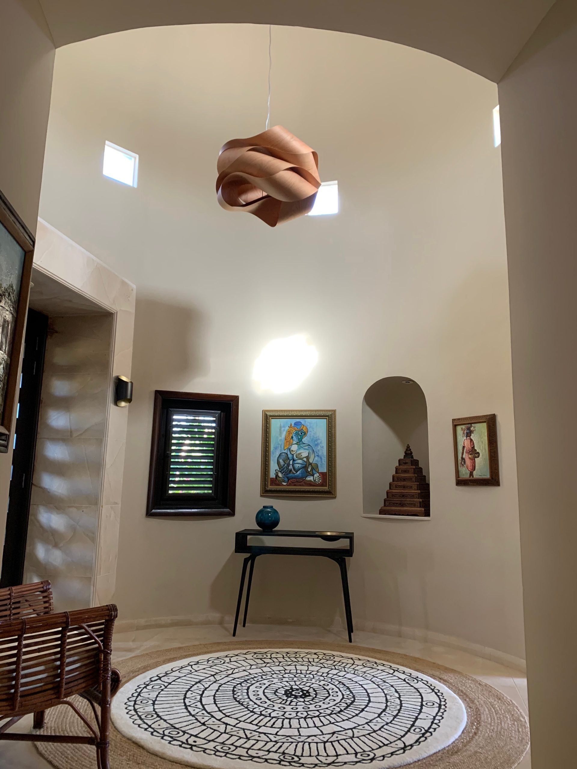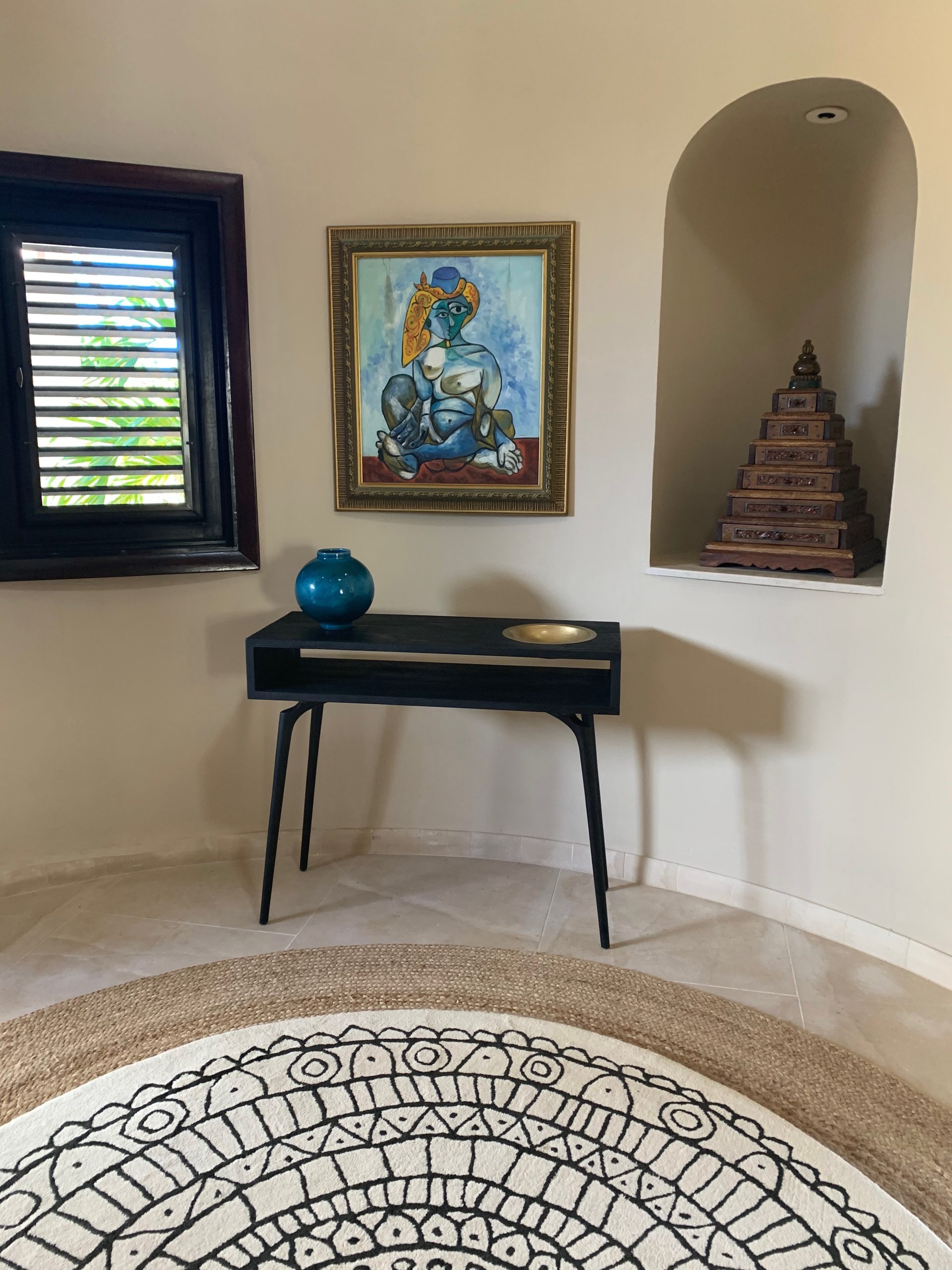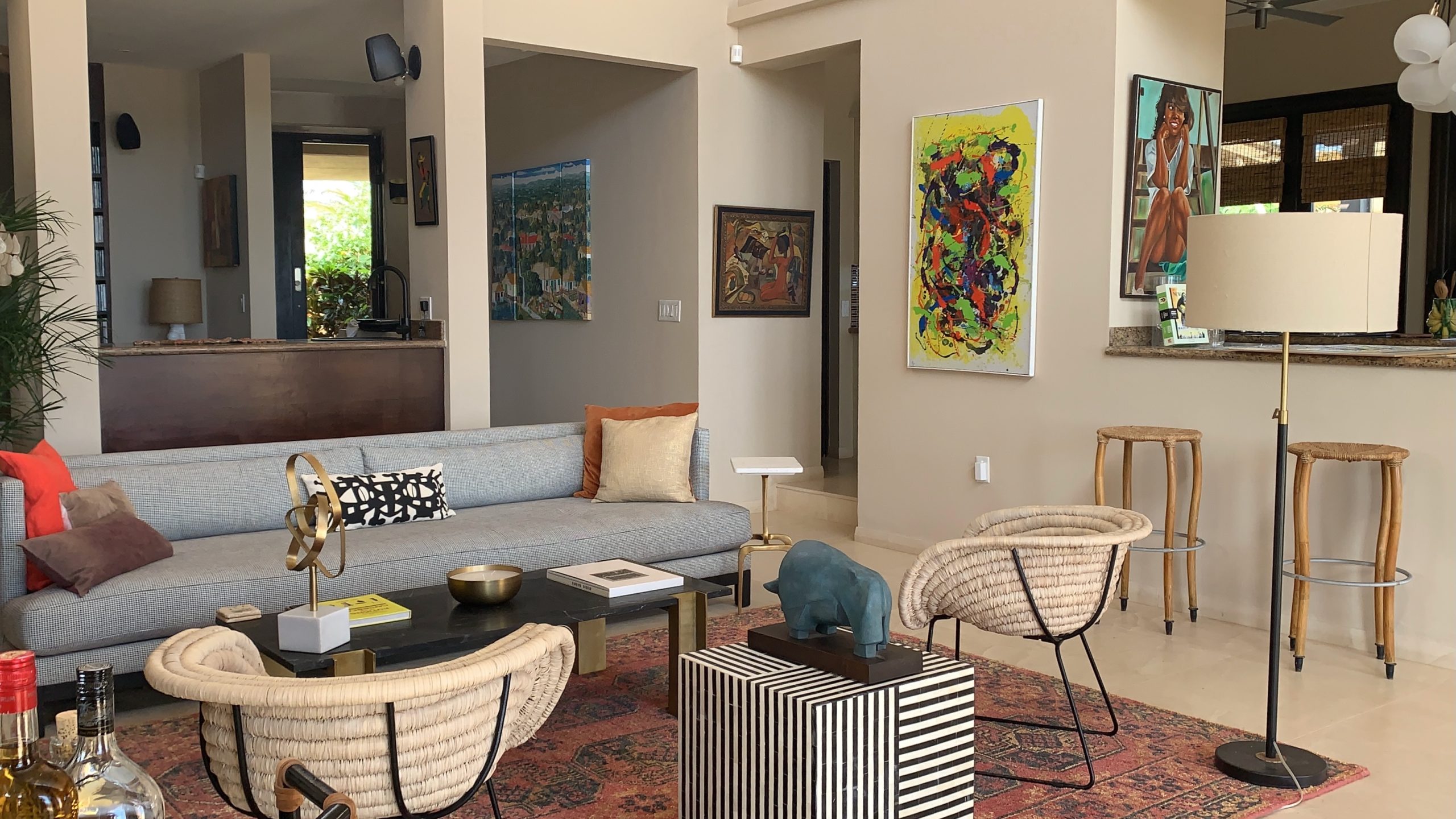 Capture the aquamarine of the Caribbean Sea and the ever changing grand vistas of St Martin by opening any of the operable hardwood louver doors that were custom designed to keep the constant caress of the trade winds flowing inside while inviting you outside. French limestone floors cool and refresh. Custom cabinetry, a notable private art collection with many listed artists, Moroccan and Indonesian furnishings are to be discovered and relished throughout.