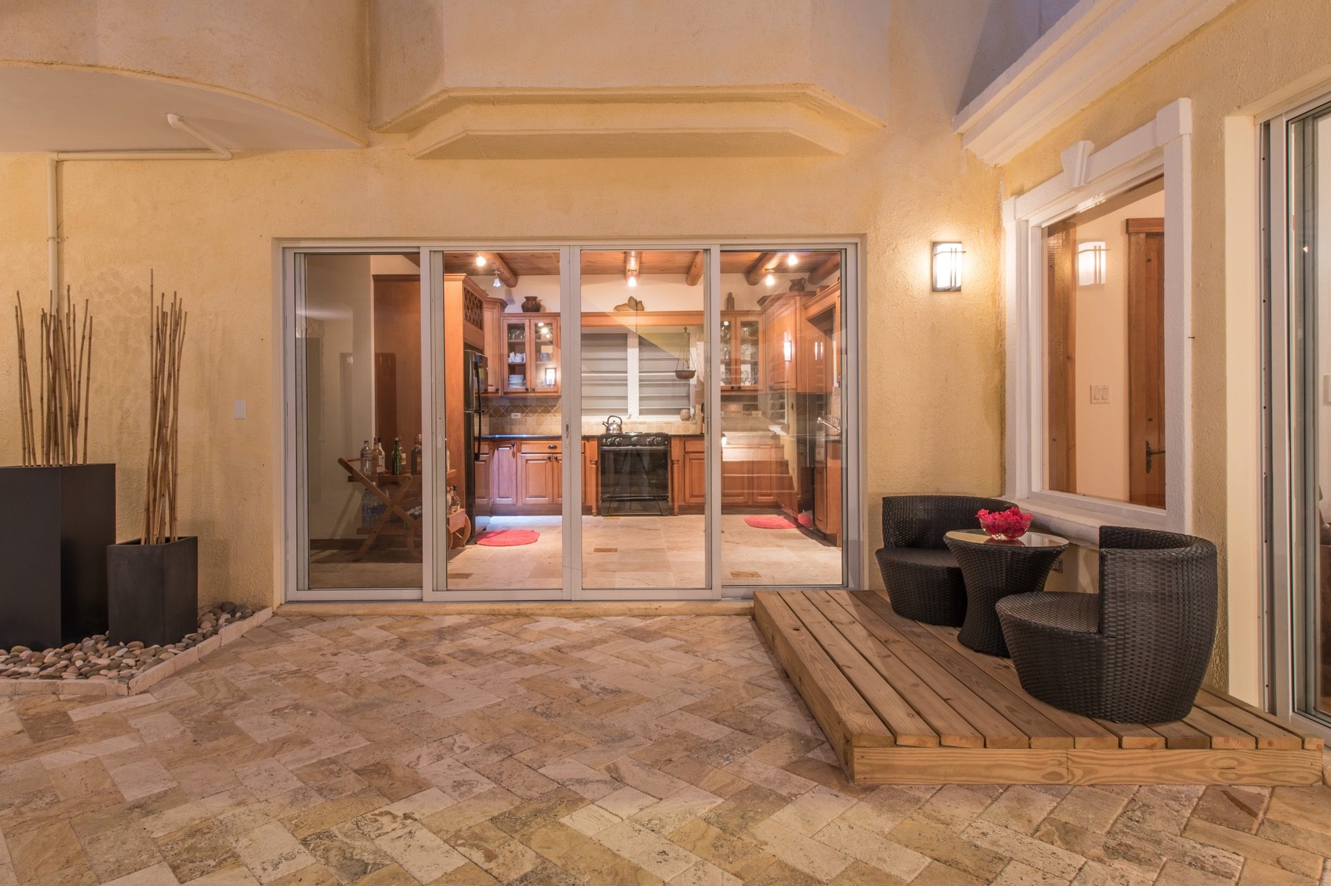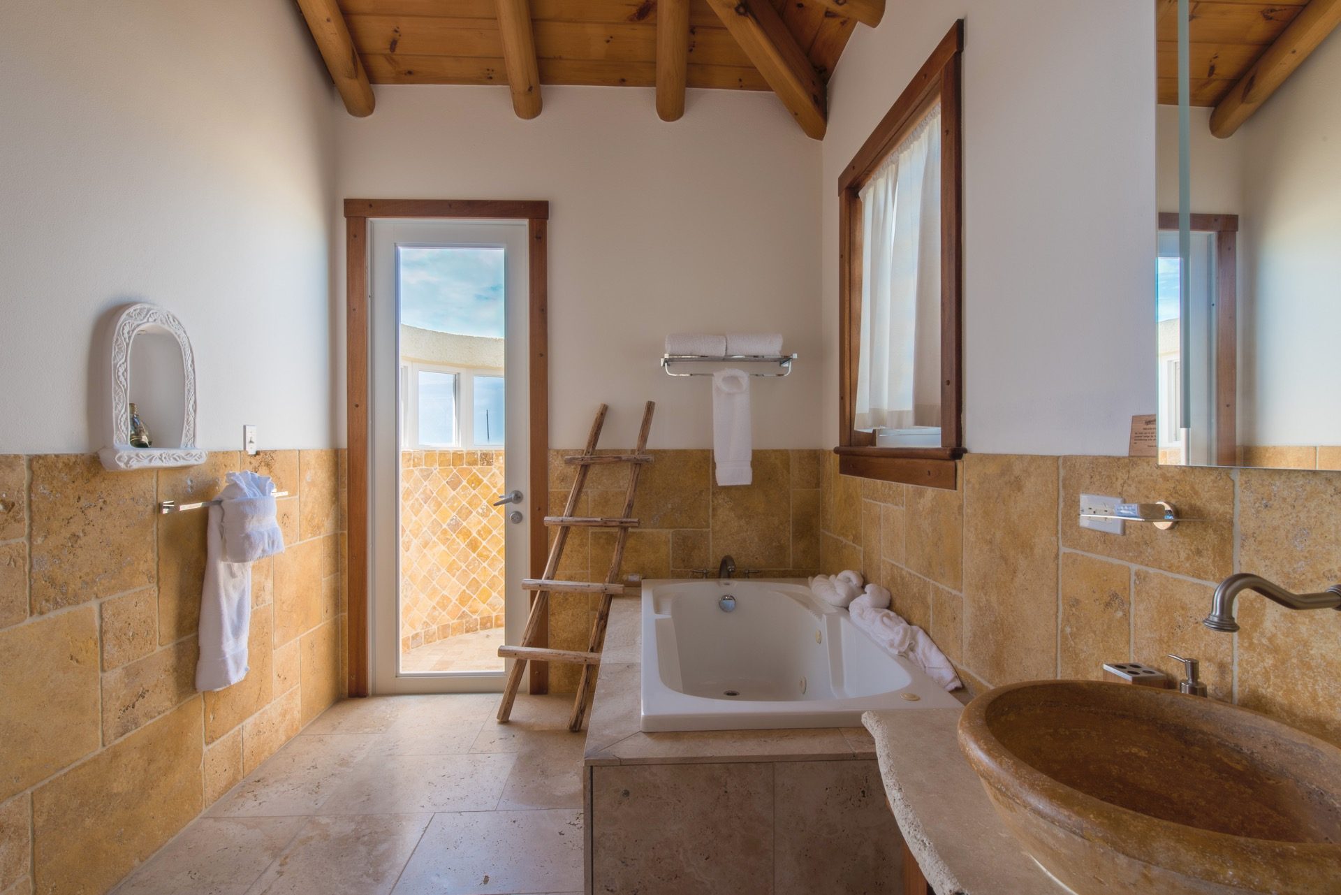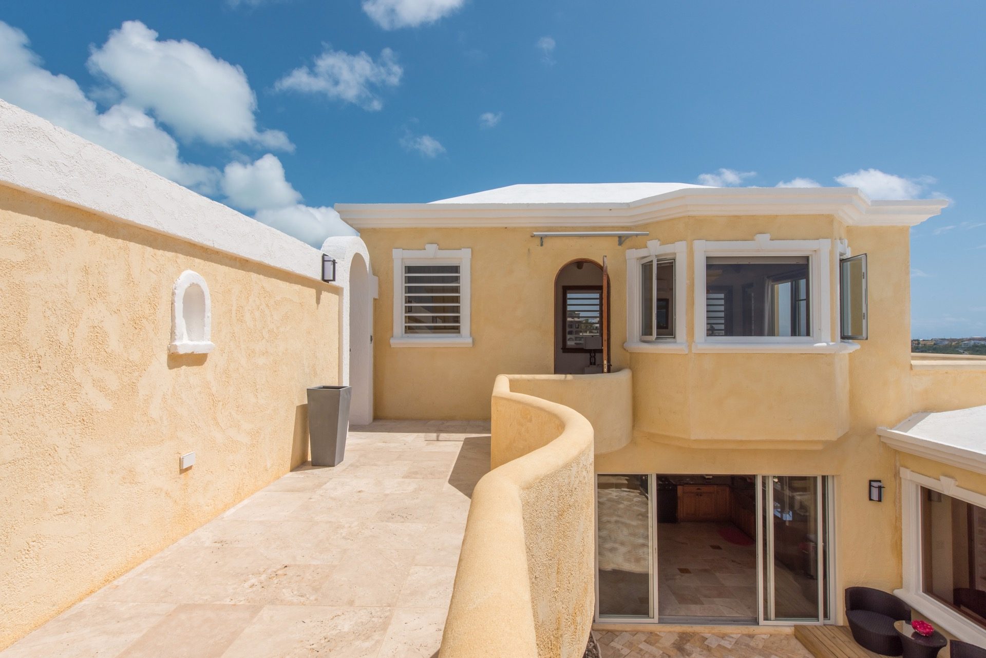 En Spyglass Hill abundan las opciones para disfrutar al aire libre. El patio al aire libre da una cálida bienvenida a la villa y trae la refrescante atmósfera del exterior al interior. Los adoquines de travertino y las paredes de piedra de Anguila talladas a mano contribuyen a un ambiente elegante y acogedor. Una piscina de borde infinito crea la ilusión de una cascada de agua en el mar Caribe, mientras que la amplia terraza ofrece diversas opciones para relajarse junto a la piscina, entretenerse o cenar bajo las estrellas.