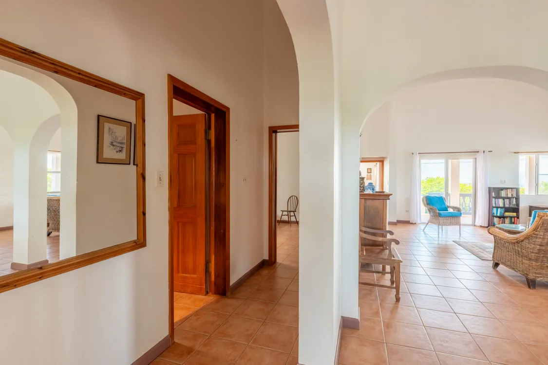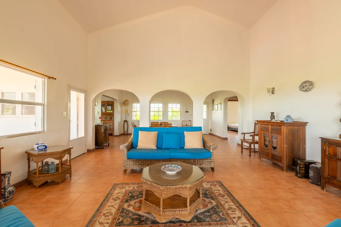 Esta casa de un solo nivel está situado en un lote de medio acre y cuenta con una gran cocina de planta abierta, comedor y sala de estar con techos altos. El espacio se abre a un porche de generosas dimensiones con zonas para sentarse a la sombra, acceso a una piscina de inmersión e impresionantes vistas al océano.