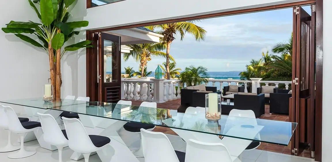 9 bedroom ultra-luxury beachfront home for sale Anguilla in Little Harbour with private beach, jetty and views of neighboring St Barts and St Martin.