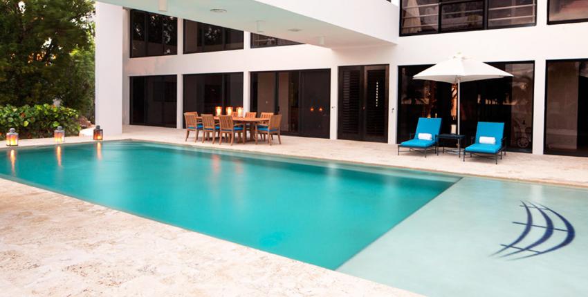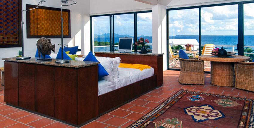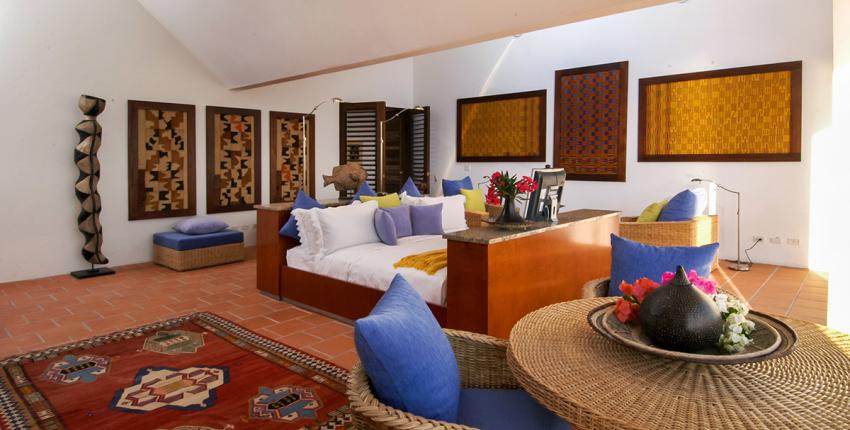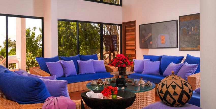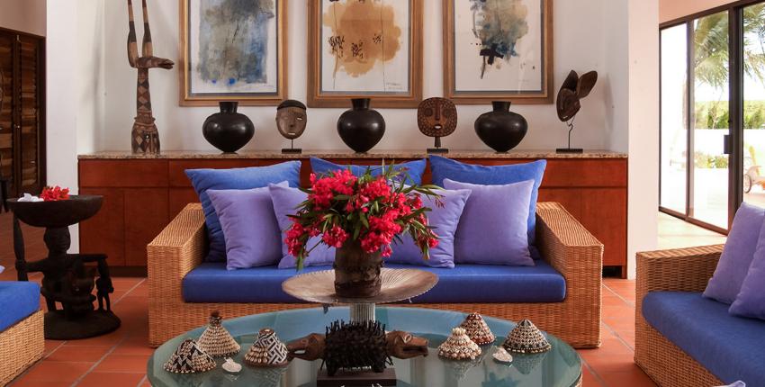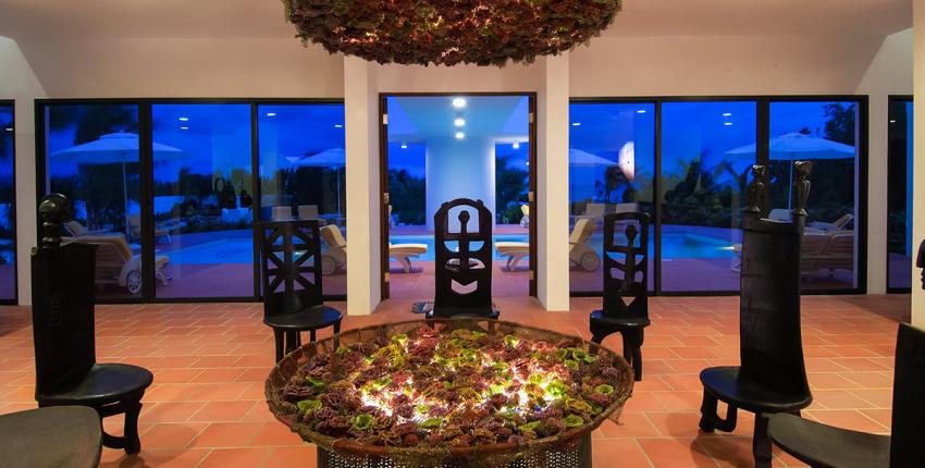 The 14,000 sq. ft. African Sapphire is named for its furnishings, featuring a specialized curated style. The villa features a original installation by artist Christina Watka.