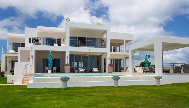 Amarilla villa perched on the sea rocks in Island Harbour, Anguilla, is the epitome of island sophistication, offering an immersive experience in the beauty of the Caribbean. Enter through a welcoming lanai with a profusion of colorful bougainvillea flowers surrounding the intricately designed wrought iron doorway. As you step into the grand foyer be prepared to be awed by the turquoise waters of the Atlantic Ocean visible beyond a series of graceful arches. Large, panoramic glass windows and doors allow for unobstructed views of the ocean from almost every room.