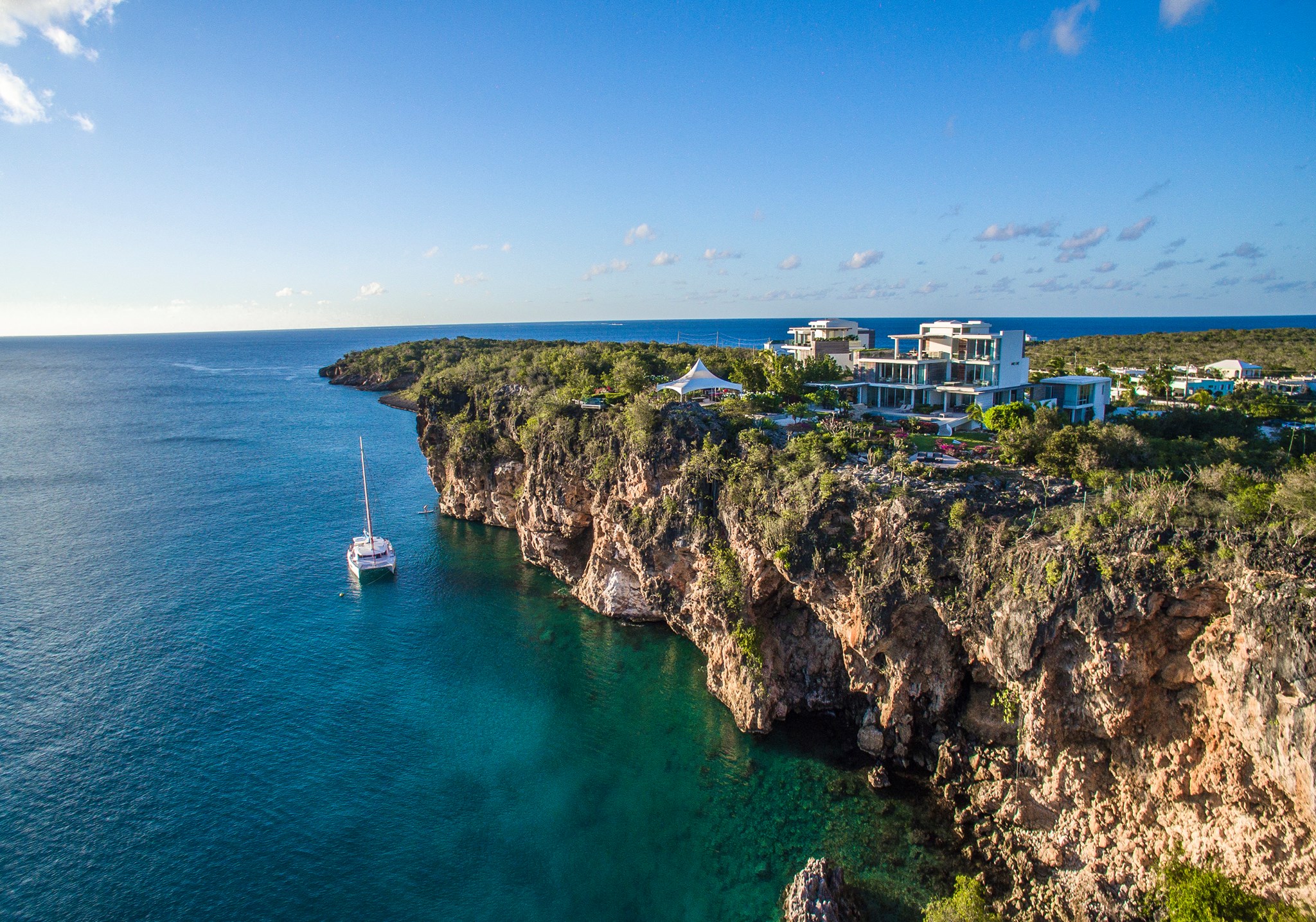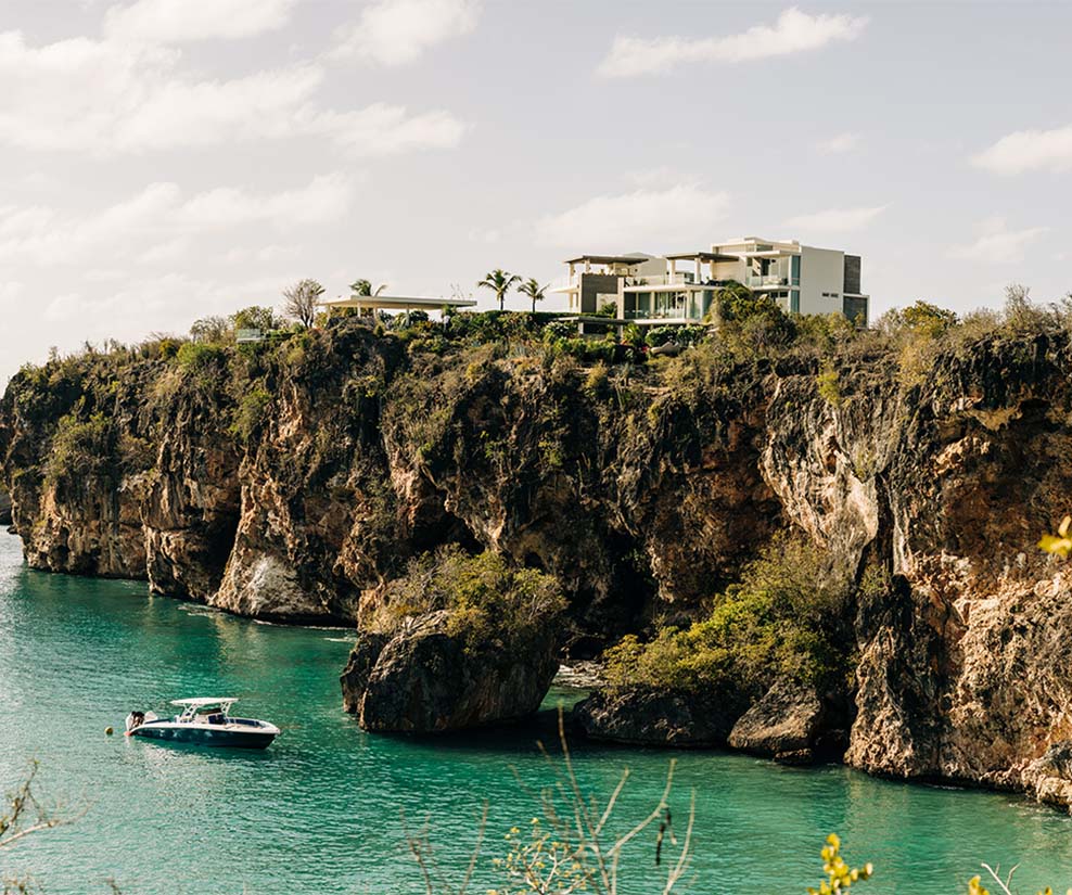 Backed by indigenous flora atop Little Bay’s dramatic cliffs, ÀNI Anguilla, an all-inclusive luxury private resort, welcomes exclusively your family and friends to this private, nature-embraced eyrie on the island’s northern shoreline. Encompassing two elegant villas – North and South – both fronted by their own private swimming pools and a host of view-drenched entertainment areas, this magnificent Caribbean retreat accommodates from 12 up to 20 guests, with a dedicated staff tailoring every detail of your stay.