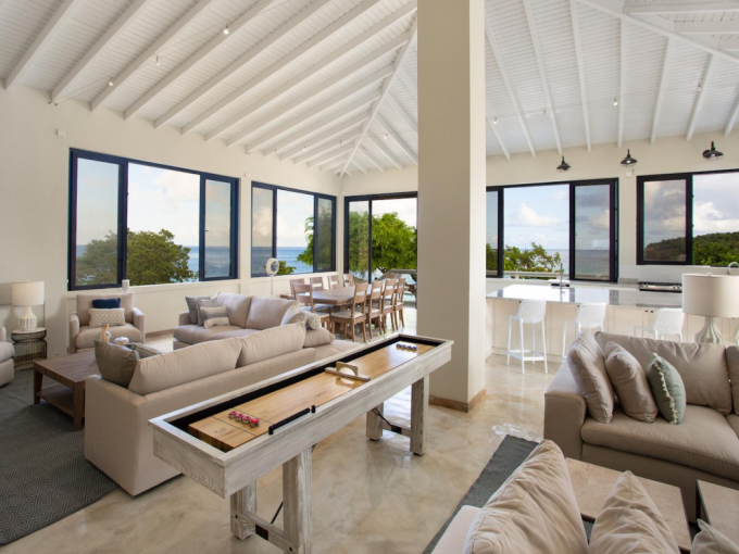 Welcome to Beaches Edge Villa, a private oceanfront estate exquisitely designed to embrace the captivating island surroundings. With expansive windows and stunning views of the Caribbean and mountains of St. Martin, guests experience exhilarating indoor/outdoor living. The two-story villa offers 5 bedrooms, a private pool, and a deck overlooking the shimmering Caribbean sea.