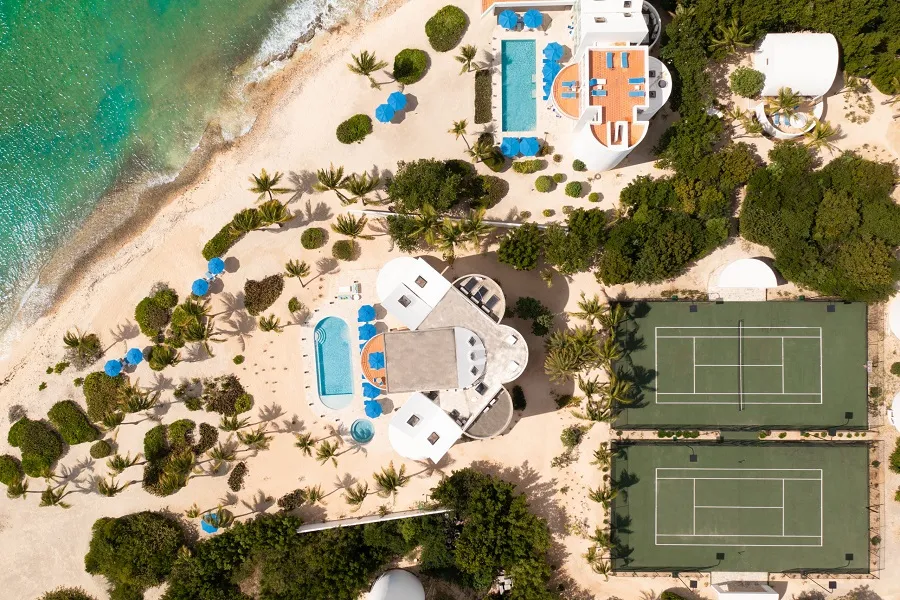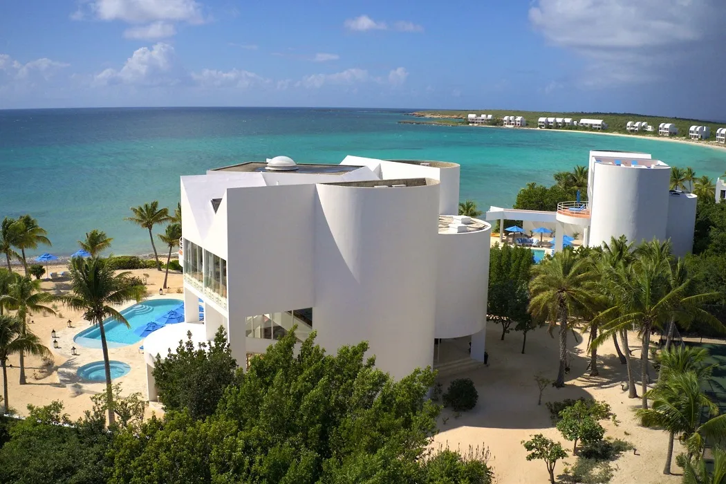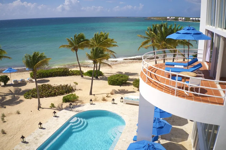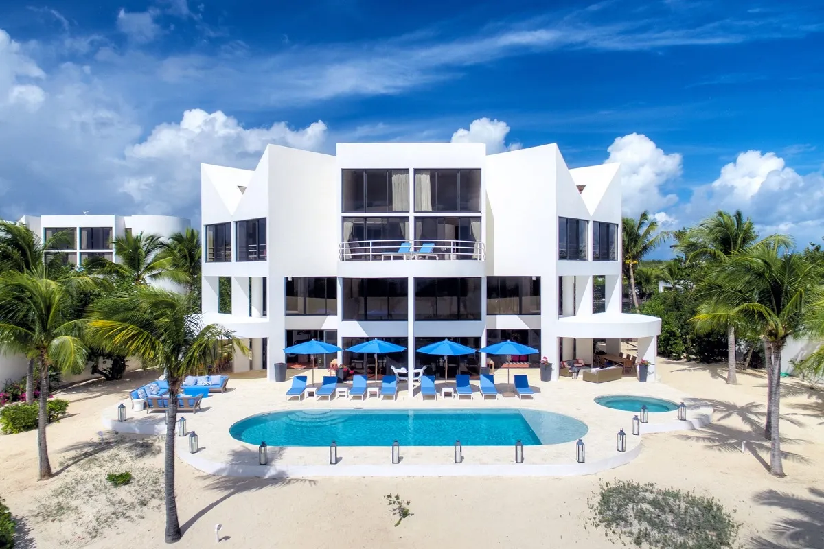 Blue Diamond is a 13,000 sqft beachfront villa with modern interiors, spacious floor plans, five full bedrooms plus an additional room with a day bed, fitness centre, swimming pool and heated Jacuzzi for up to twelve people. Part of a luxury compound on the spectacular Shoal Bay West, the villa has a unique flower-shaped design which renders it perfect for large groups because all three levels have a central area surrounded by smaller rooms in the alcoves.
