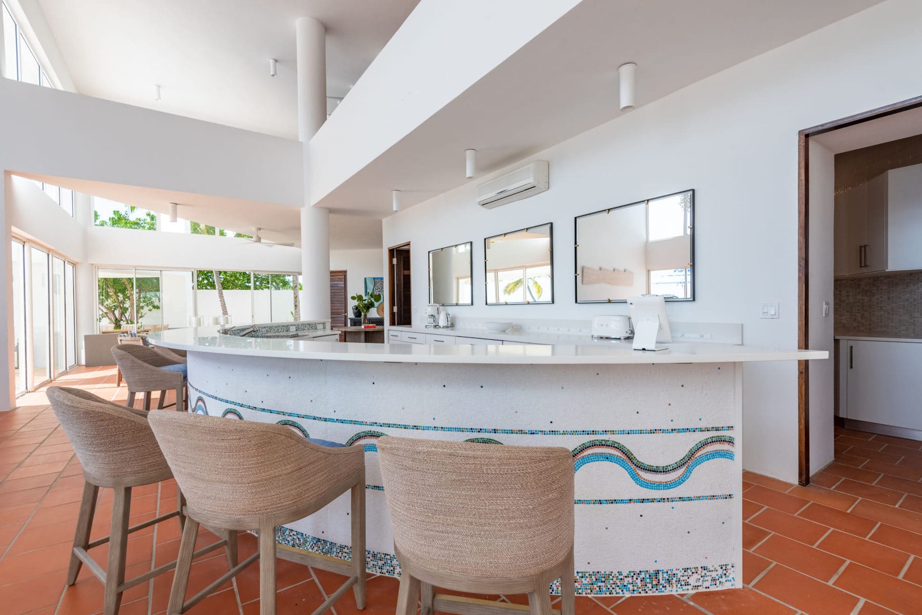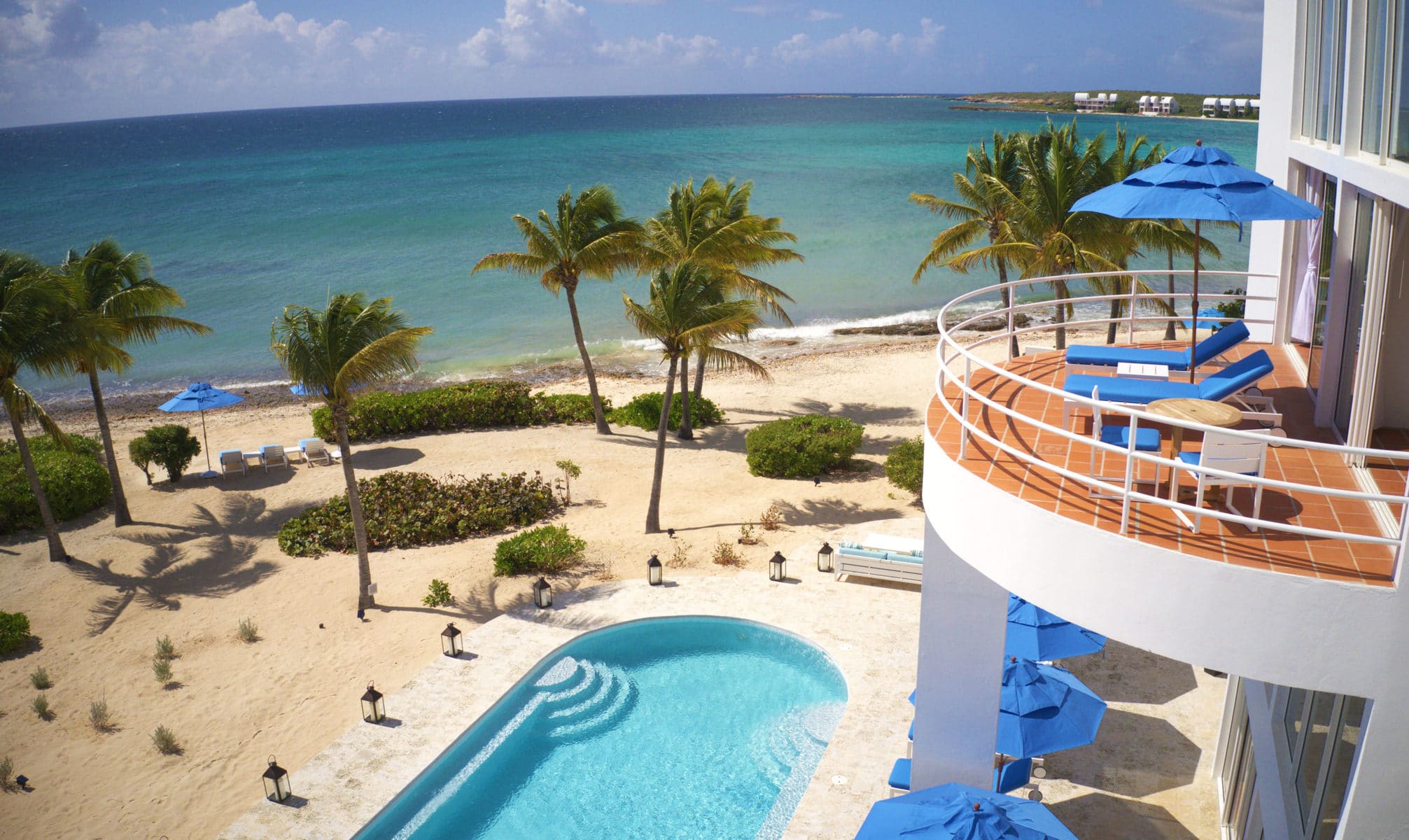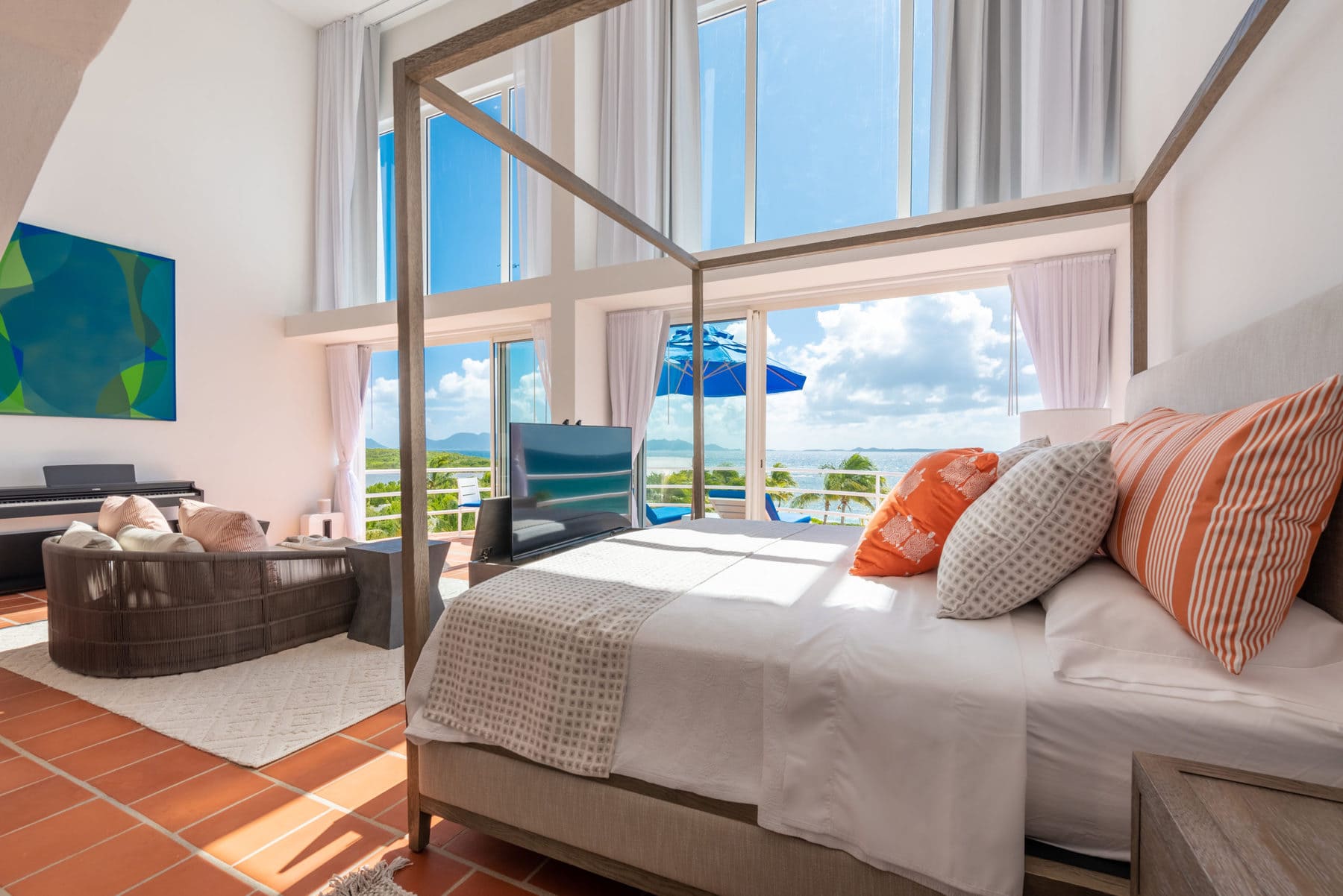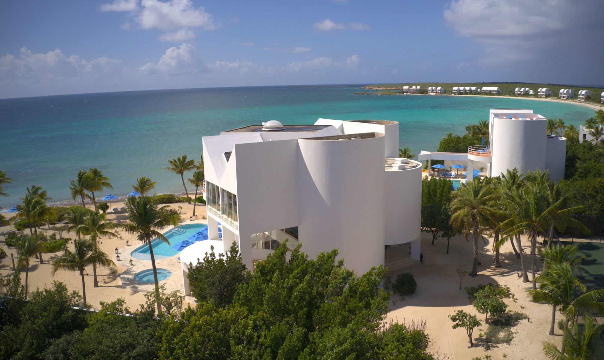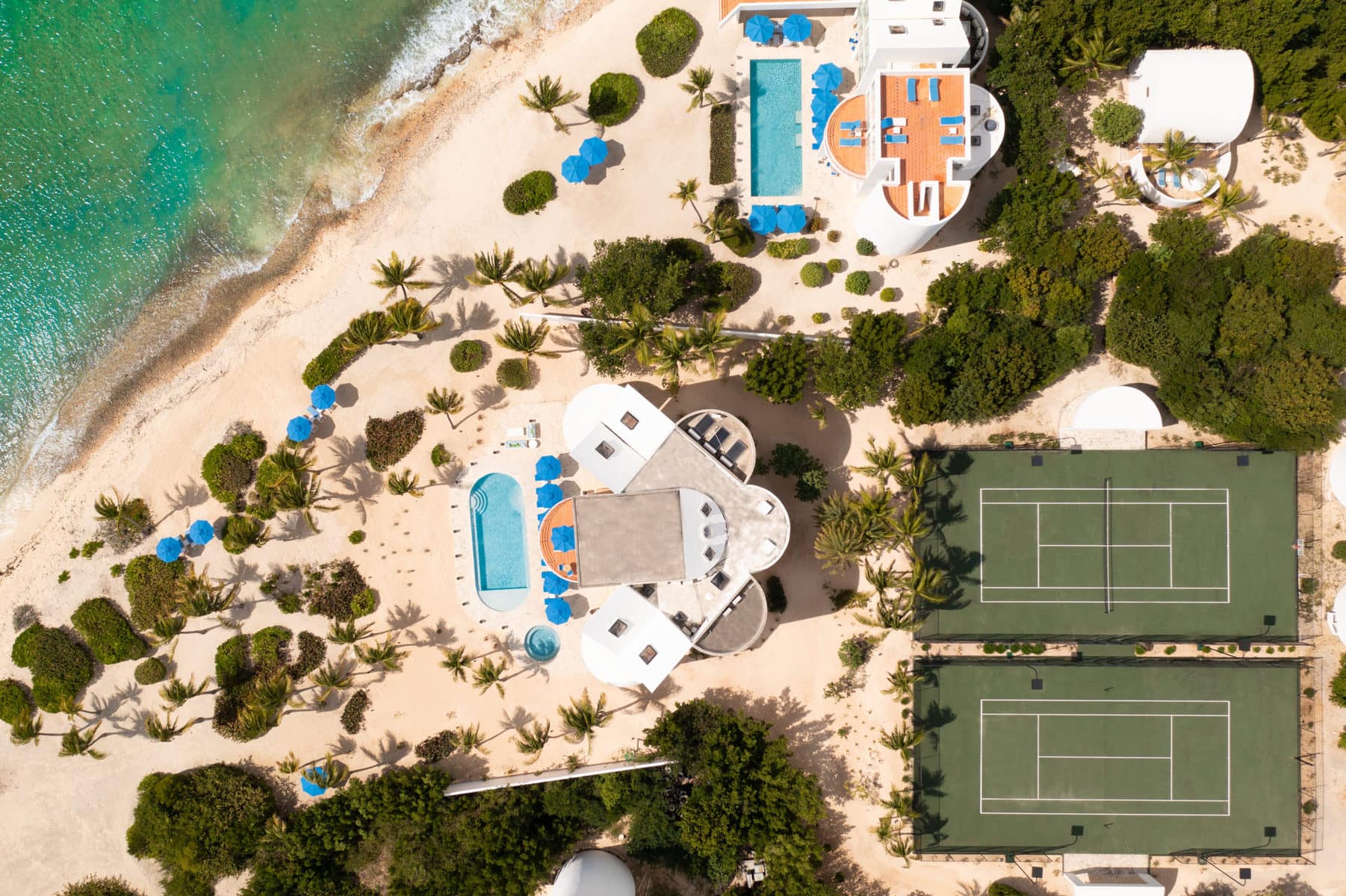 Blue Diamond is a 13,000 sq. ft. villa with modern interiors, spacious floor plans, five full bedrooms plus an additional room with a day bed, a swimming pool, and a heated jacuzzi for up to twelve people. The Villa underwent a full reconstruction, renovation, and interior redesign in the Winter of 2021. It is sold as a fully furnished villa and is available for purchase with the following features: