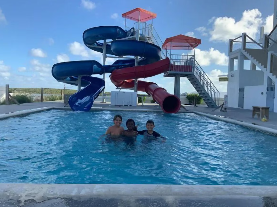 Our home is beachfront with an infinity pool. It is a single-story home which is easily accessible, having only one small step down to access the front entrance. The property is completely fenced and has an electric gate at the driveway entrance making this home a safe, child friendly home. Our home is a perfect getaway for families and elderly couples providing you with the ability to stay in one location and be able to enjoy the beach and a pool. It is also convenient to all island activities.