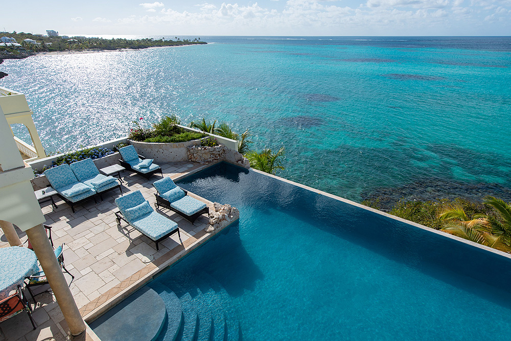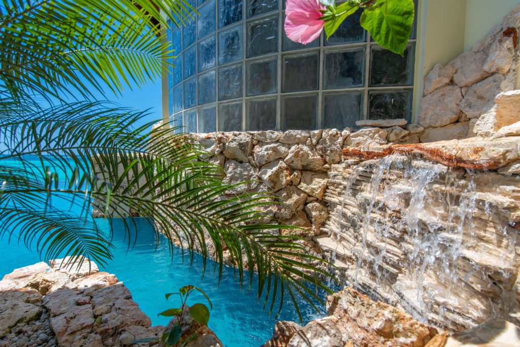 Cascade Coastal Villa is a spectacular 7 bedroom suite / 7.5 bathroom villa whereby there are two bedrooms in the main house / one bedroom in a stand alone suite across from and on the same level as the main house / four bedrooms in two separate suites accessed down a flight of stairs from the main house all set on approximately .6 acres of fabulous ocean frontage that’s been lovingly landscaped and is as attractively priced as it is attractively designed and maintained. An estate of 13,000 sf of indoor/outdoor living space that’s been completely updated after hurricane Irma with new furniture, beds, appliances, hurricane shutters, doors and sliding screens, etc. The gracious patio features a Weber 6 burner BBQ / the villa has a supplemental 38000kw whole house generator / the pool measures 25′ x 40′ and features a side lagoon complete with waterfall and colored light show / there is a 900sf pier suitable for snorkeling access or for launching the villa’s kayaks, paddle boards, and wind sails / the villa itself is gated and very private.