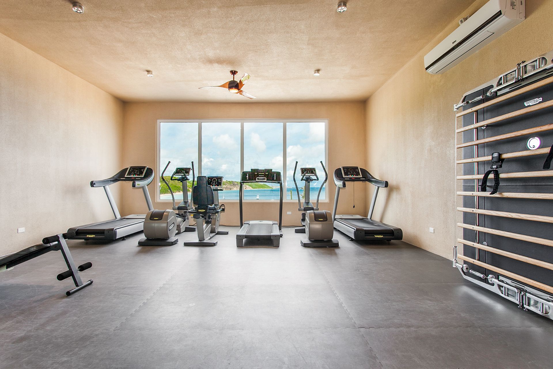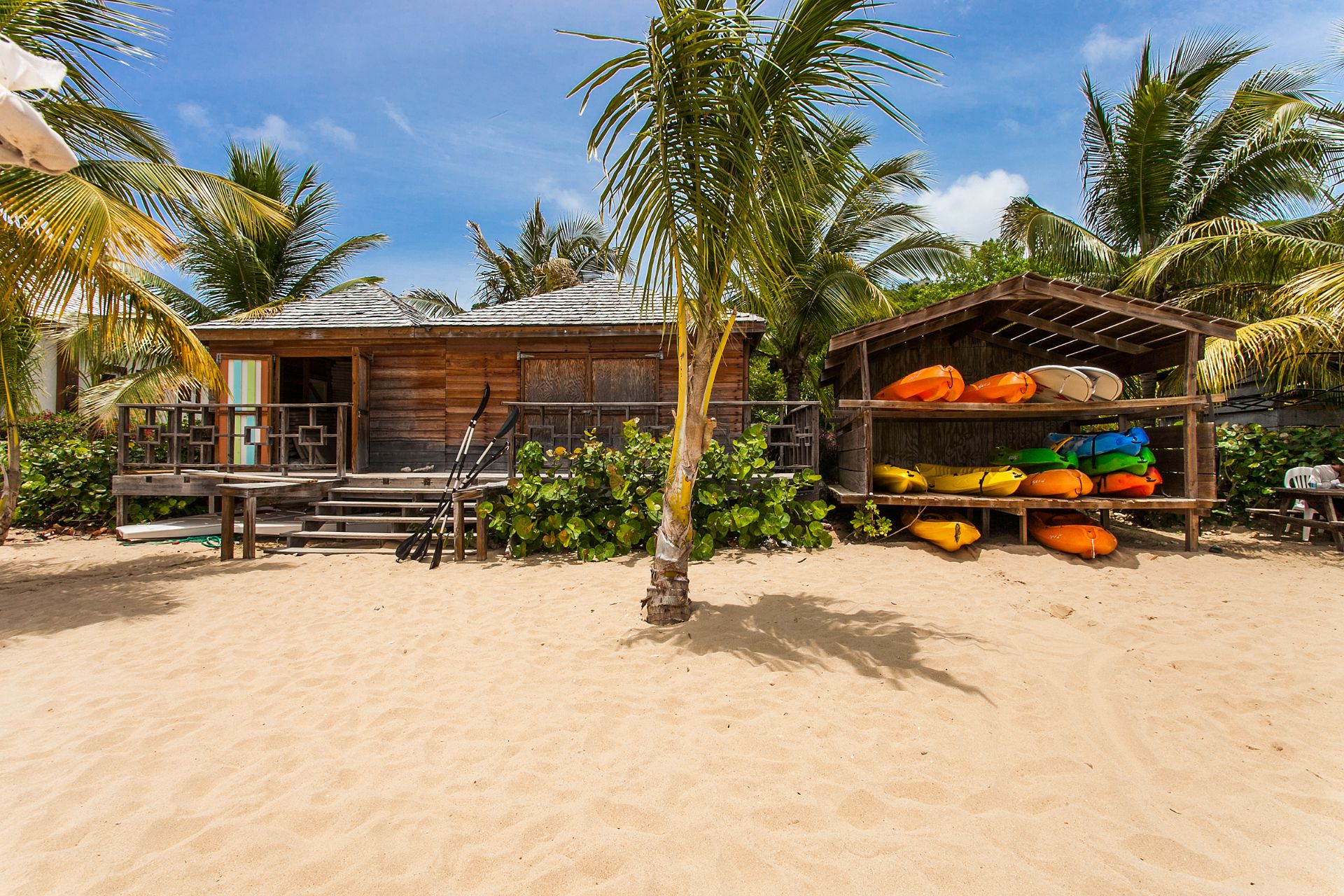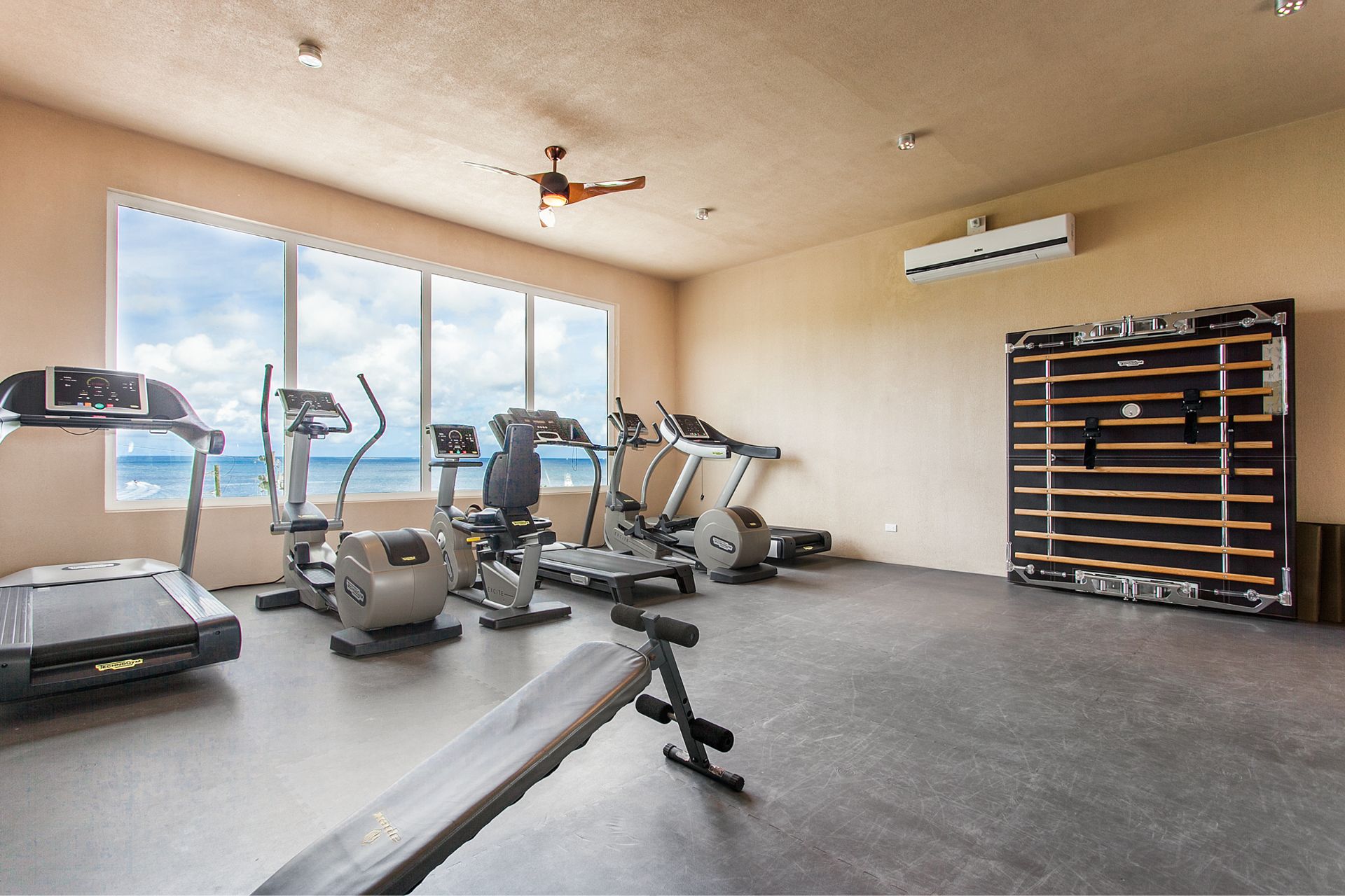 The resort offers a fitness center for guests, full concierge service, and dedicated beach service at Crocus Bay. A small restaurant is on site with a pizza oven and limited menu. Breakfast is prepared in this area for the rental guests.