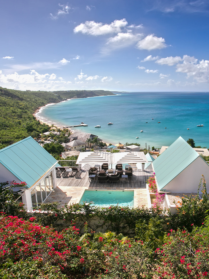 Ce Blue is an lovely villa resort situated overlooking Crocus Bay, Anguilla, boasting a collection of 8 villas, with the unique opportunity to acquire one of the last 3 available for purchase. Nestled into the hillside, the villas offer a tranquil retreat just a short stroll away from the pristine beach.