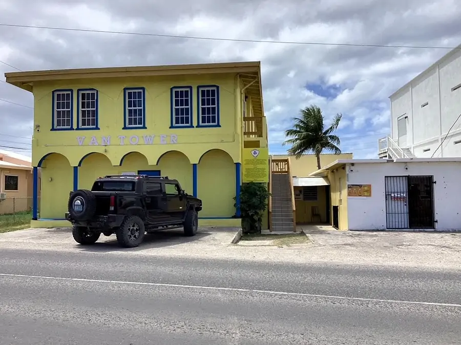 This commercial property for sale in Anguilla is enviably located, right in the heart of the island’s business district. The compound sits on a quarter of an acre on the eastern end of The Quarter, past Proctors’ supermarket, across the road from Saint James’ School of Medicine, and it consists of two buildings.