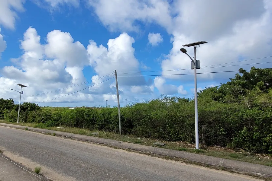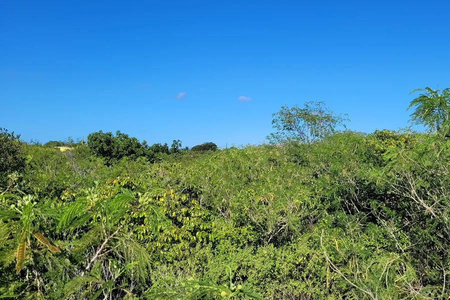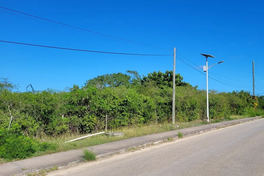 Conveniently situated, on the edge of the busy Stoney Ground Road and flanked by paved roads on three sides, the parcel has access to power, water and telecoms. The terrain is flat with a relative abundance of top soil, as evidenced by the thick shrubbery.