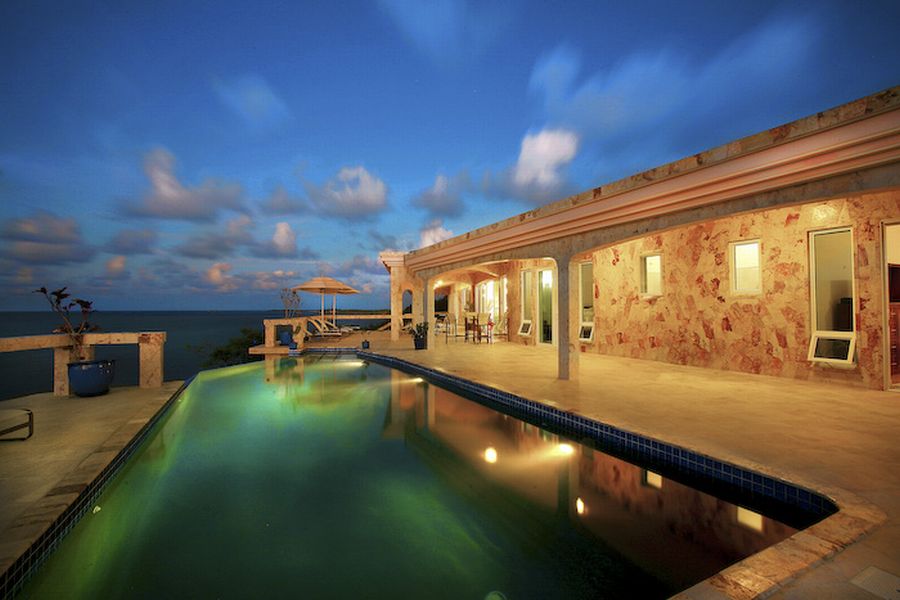 Desert Rose is a large 10 000 square foot, villa perched on top of a cliff in Captains Ridge/Island Harbour on the northeast coastline offering breathtaking vistas of the sea. It is comprised of 4 bedrooms, each with their own full bathrooms, living room with fireplace, kitchen/dining room, laundry room and a two-car garage.
