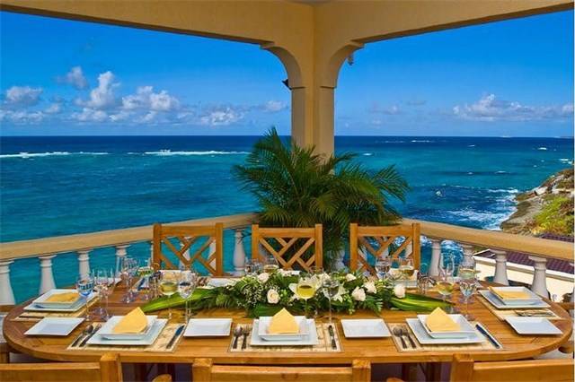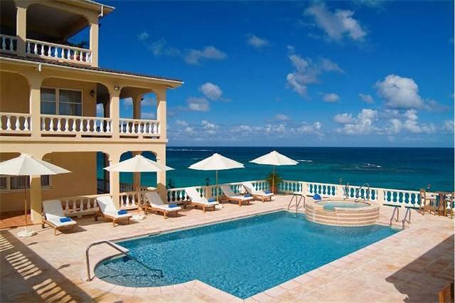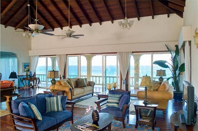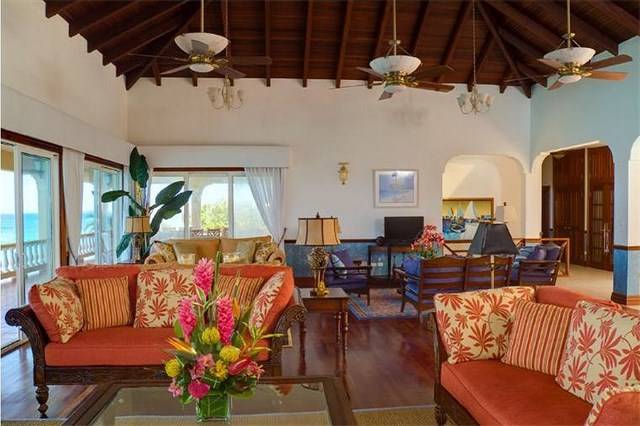 The essence of this tropical retreat is an overwhelming feeling of relaxation and tranquility whilst providing first class amenities. Each floor of this three story manor provides a unique living and entertaining experience. Dual curved staircases lead to the top floor where the great room and spectacular views of the turquoise waters unfold as guests enter the villa. The great room of Hughes Hacienda occupies almost the entire top floor and features soaring high ceilings that invite the island’s cooling easterly trade winds.