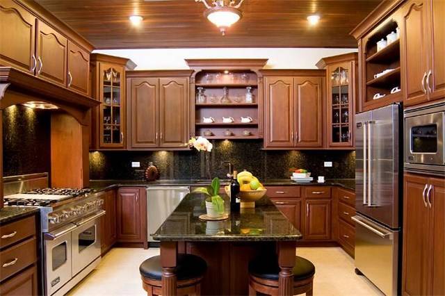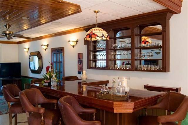 A private bathroom, dressing area and spacious walk-in closets complete the layout in both suites. The main kitchen is located on the western end of the top floor and was conceived for both the master and amateur chef. State of the art appliances, luxurious wooden cabinets and every conceivable convenience is available to create the finest gourmet meal or quick midnight snack. The ground floor is reserved for guest recreation. A charming and spacious recreation room features a vintage style wooden bar, multiple seating arrangements, a large flat screen plasma television and a classic Wurlitzer jukebox that evokes memories of days gone by. A computer station is set up with high speed internet connection.