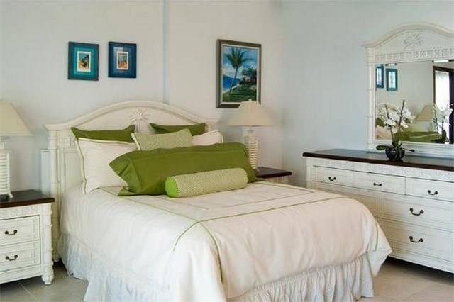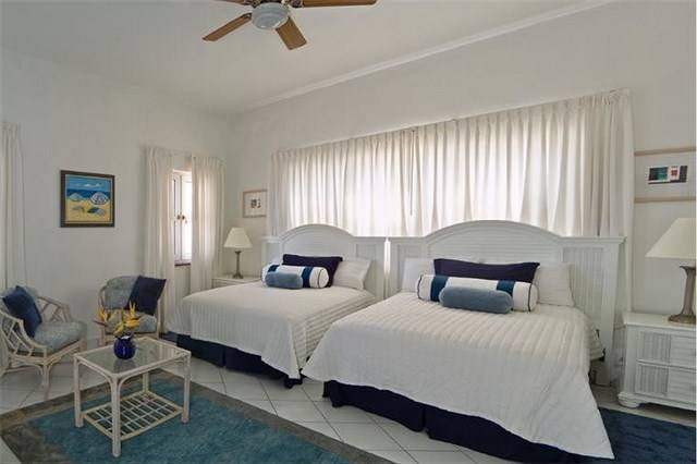 The Pool Suite located off of the pool deck is the villa’s second Junior Suite. Decorated in bright and sunny colors, the Pool Suite features a main lounge area with large picture windows facing the ocean, a fully equipped galley kitchen, seating and dining areas and a bedroom with queen sized bed and private bathroom. A second bedroom with twin beds has a communicating door allowing the suite to be converted into a two bedroom apartment. A single bedroom, with ocean views, queen bed and private bathroom, is located on the eastern end of the pool