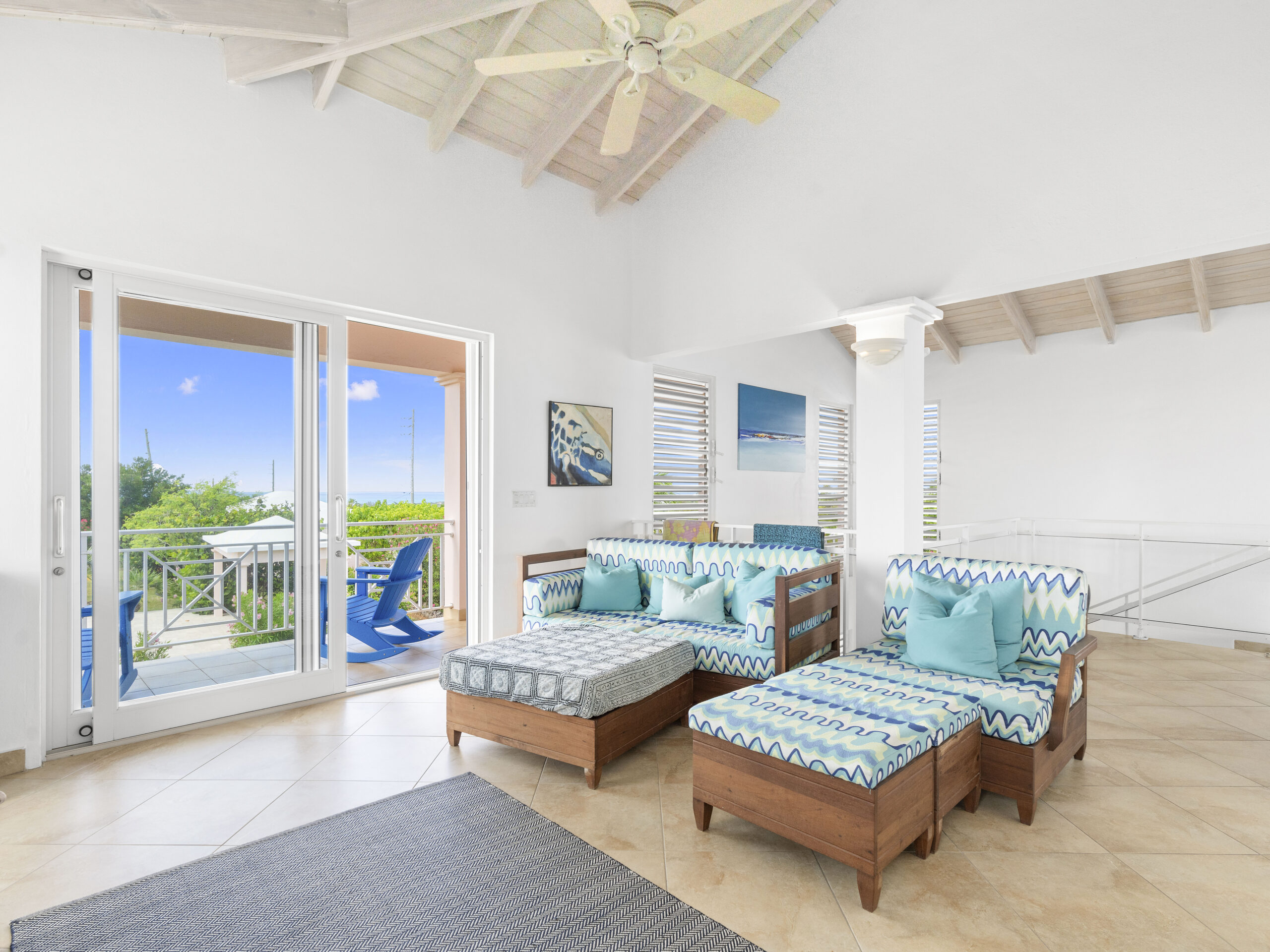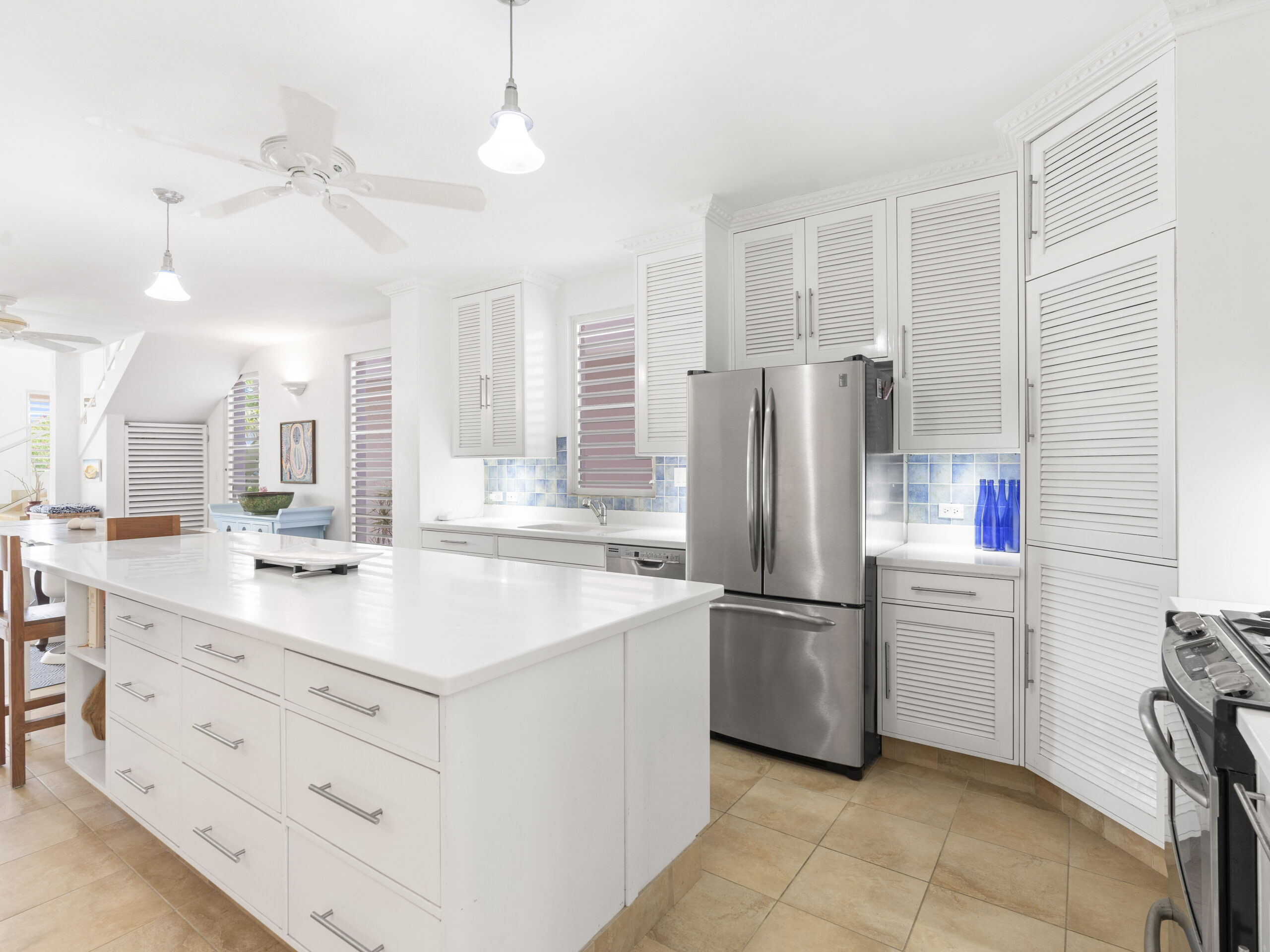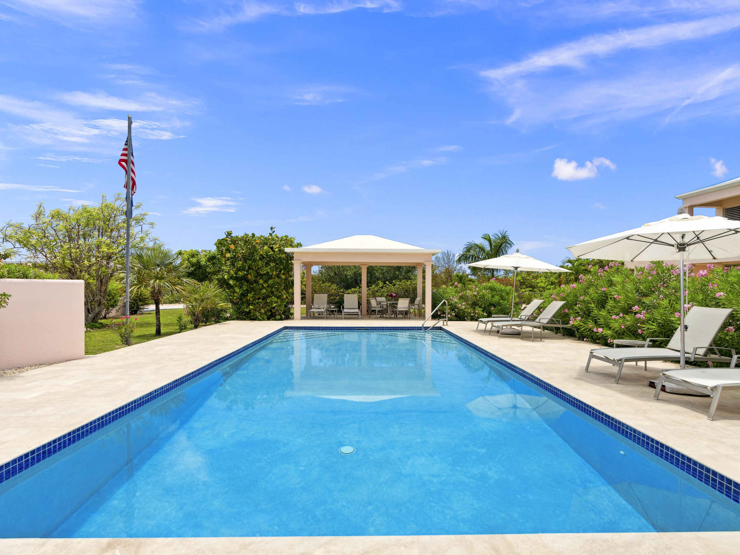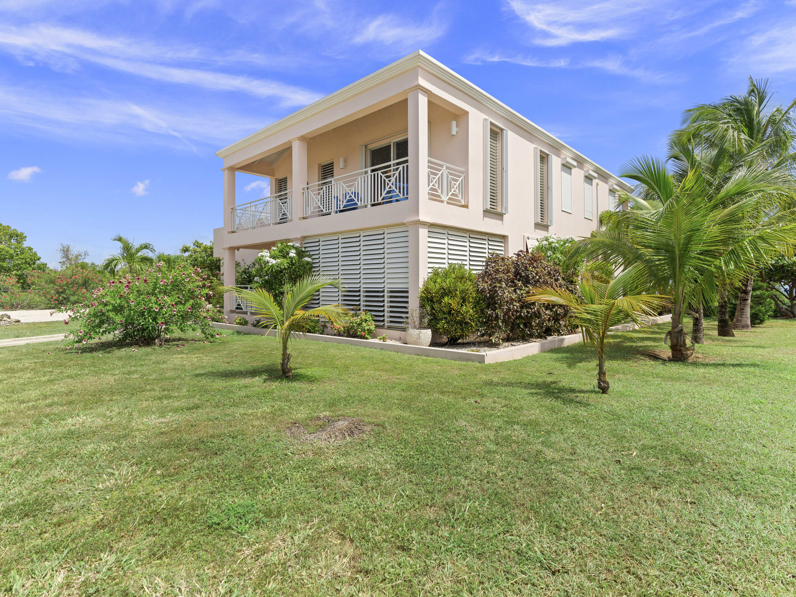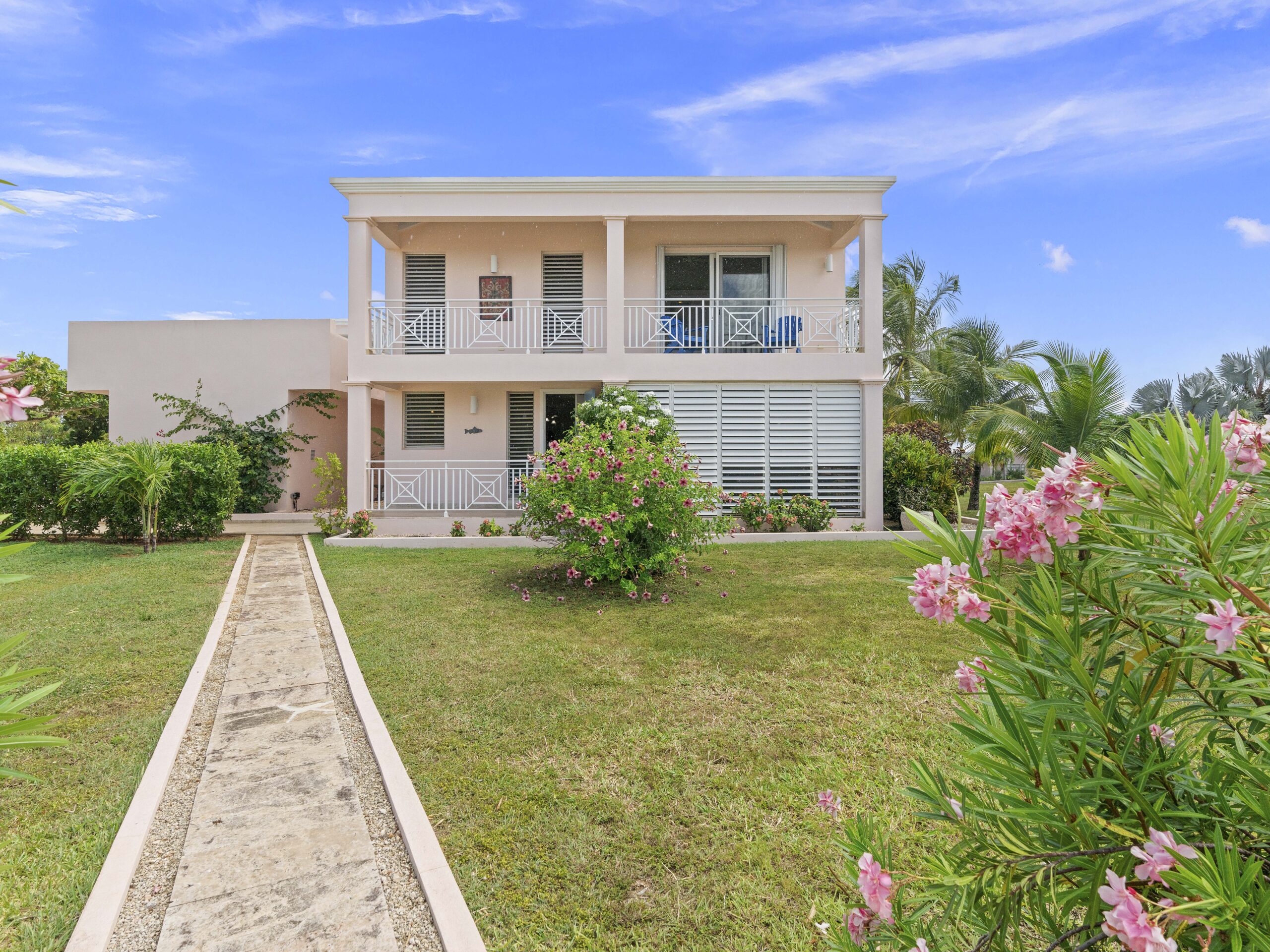 The home , situated on .30 acre, catches the Caribbean breezes from all directions and is designed with day and night privacy and security in mind. The primary outdoor space of heated pool and covered decks sits comfortably on the second floor and flow into a large indoor living room. This floor also includes the master suite and a den with wet bar that can be converted into a 4th bedroom.