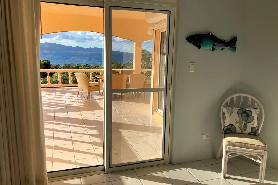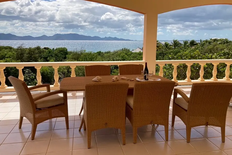Bay windows in the master bedroom and the living space on the first floor provide a distinctive touch, although it is at the covered gallery upstairs where you are really confronted with the property’s wow factor in the shape of expansive views across the strait over to St Martin, Flat Island and St Barth.