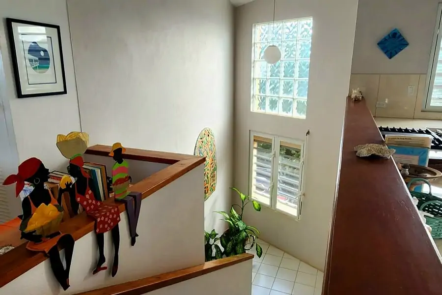 Sitting on a tidy half-acre of flat land and within walking distance of Elsie Bay, on the southern shores of Anguilla, the traditional two-storey building – known locally as an upstairs-downstairs – features four bedrooms, each with their own bathroom, as well as a spacious living area / diner, and a charming open-plan kitchen on the upper level.