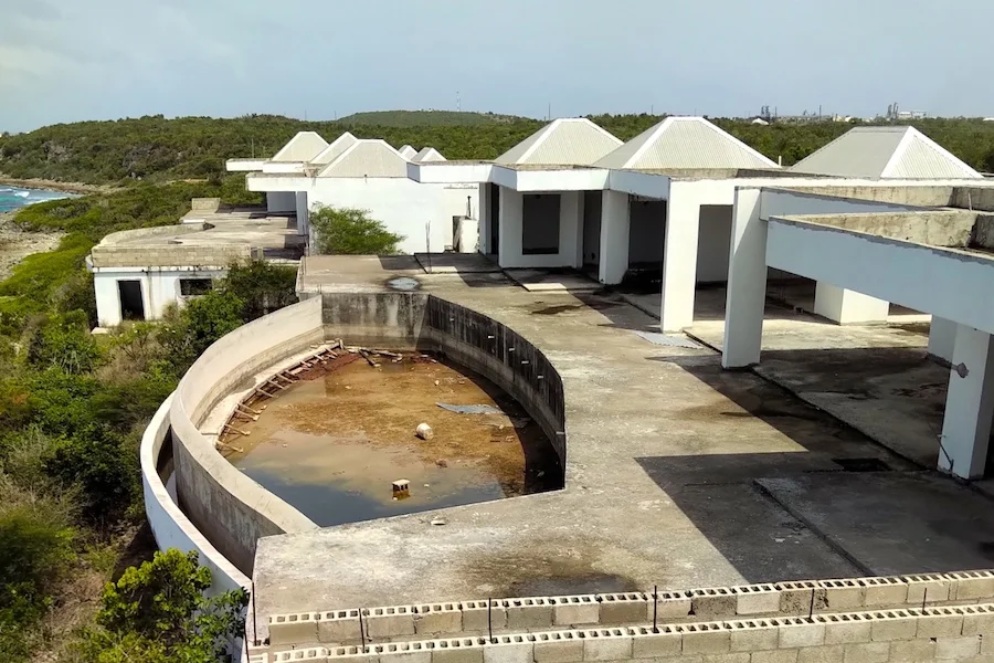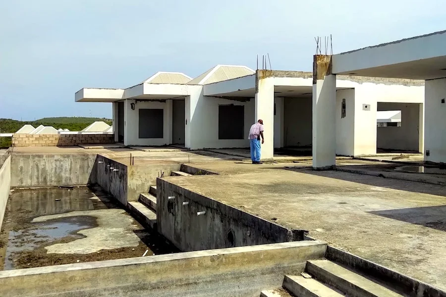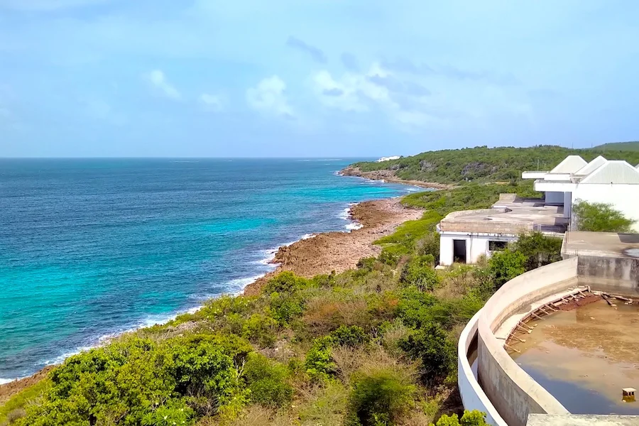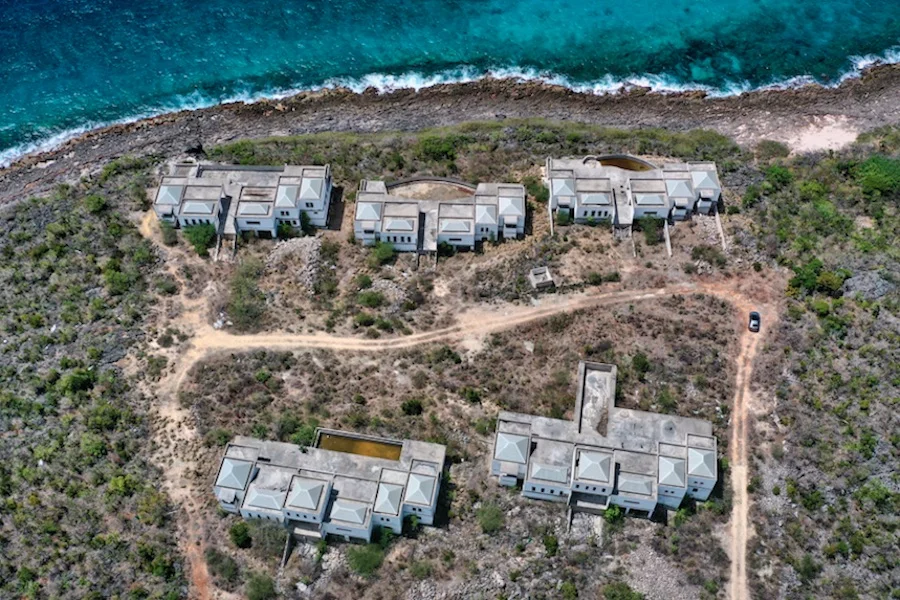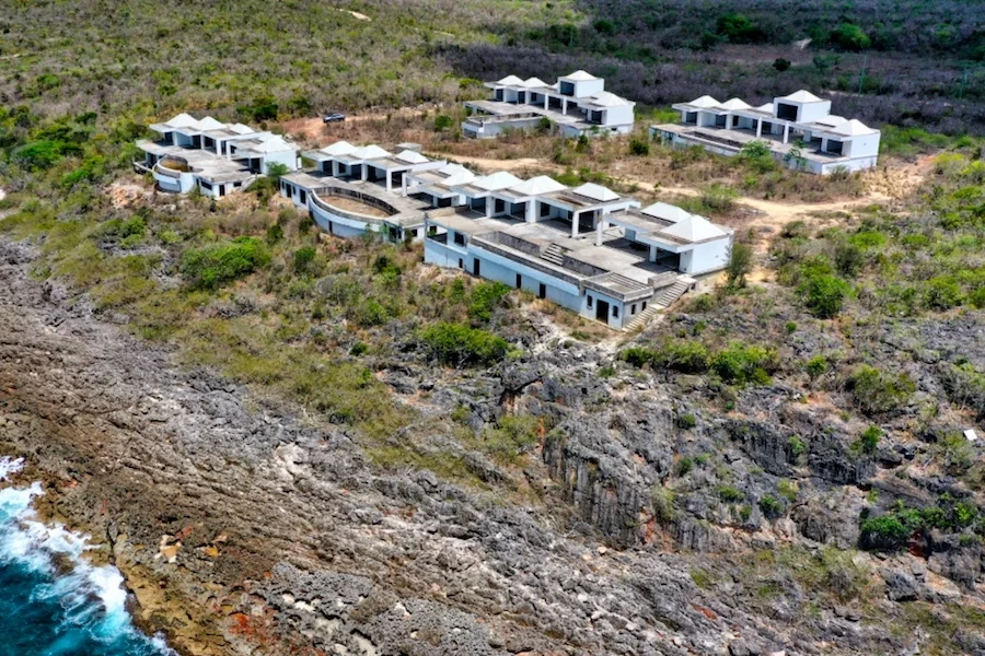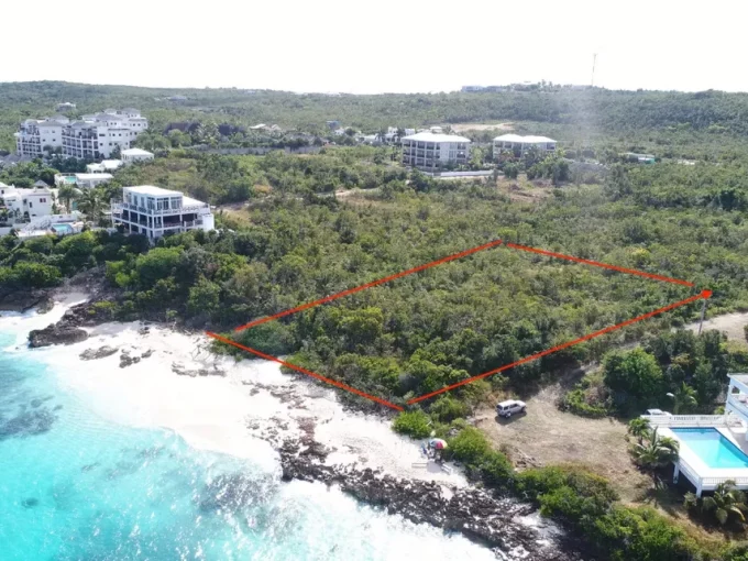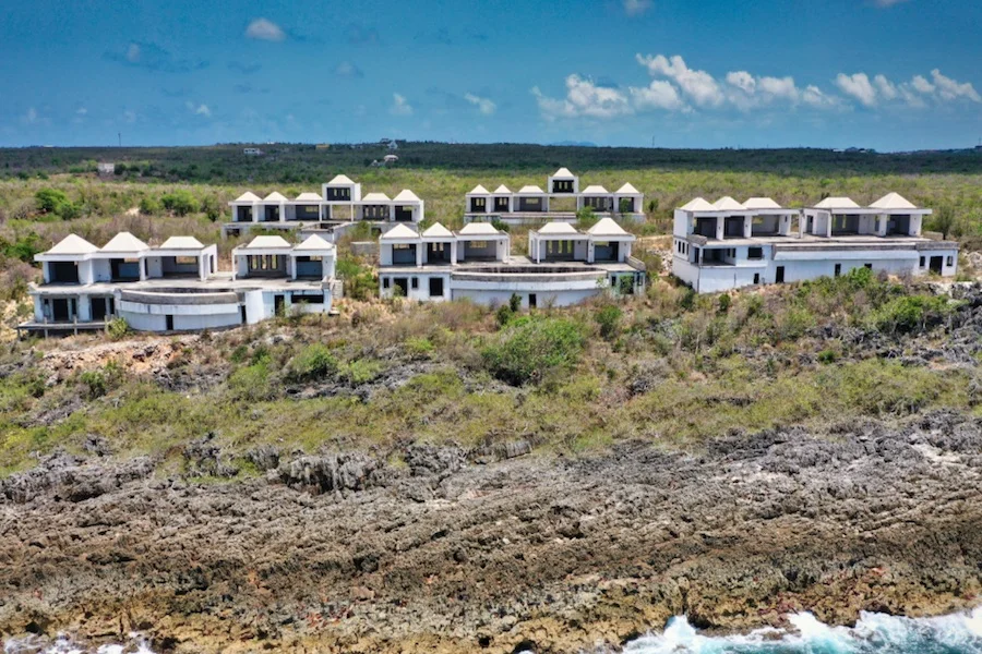 This exceptional property for sale in Brimegin, on Anguilla’s north coast, is a one-of-a-kind investment opportunity for a development company or even a large family looking for an exciting recreational project. The complex comprises the concrete frame of five seashore villas (approximately 55% ready), laid out over two rows with extensive undeveloped land and unobstructed views of the Caribbean Sea, including Prickly Pear, Dog Island and Anguilla’s invaluable coral reef.