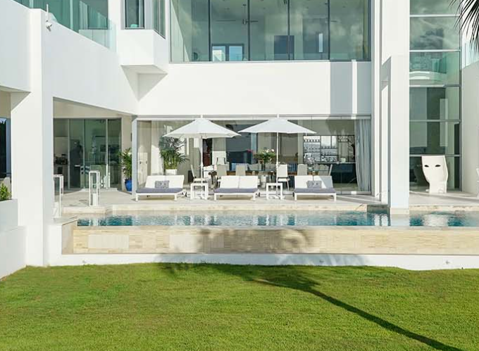 The property is completely enclosed by a handmade stone wall and fencing. The gardens are planted with a variety of indigenous and tropical plants which create a beautiful low maintenence setting. From an infrastructure perspective the villa is energy efficient and eco-friendly. Electrical power is produced by a 8.2 KW solar pv system. The villa is primarily «off the grid» with the exception of an electric oven/microwave and local power is available should it be required. Water is provided by rain water collection into the 40,000 gallon cistern which is plenty for normal running of the property. New in 2018 are cook top, washer and dryer, gas hot water heater, pool pump and water pump.