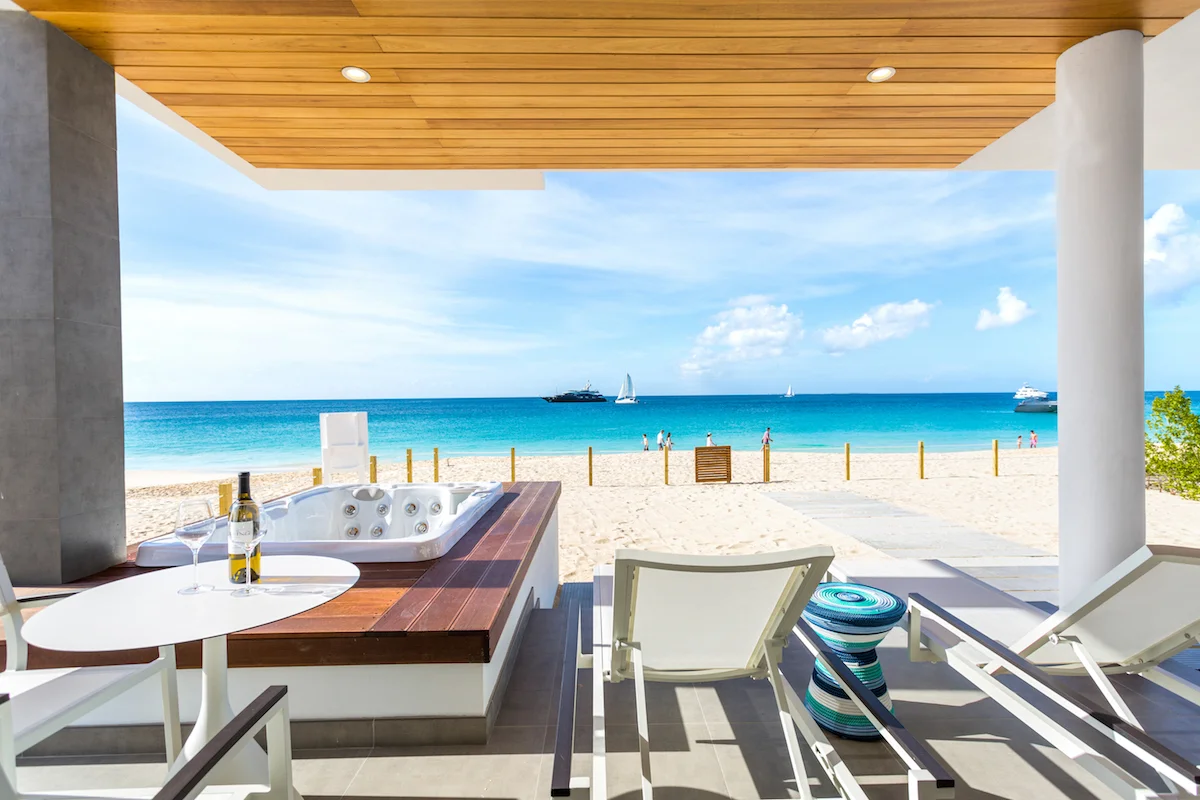 Tranquility Beach is a three-building condominium surrounded by so much beauty it’s almost unfair. Each building boasts several fully furnished one-bedroom suites, each between 900 and 1,350 feet square, with their own pool or Jacuzzi tub, modern appliances, and private terraces overlooking the dazzling range of white-to-blue splendor offered by Meads Bay.