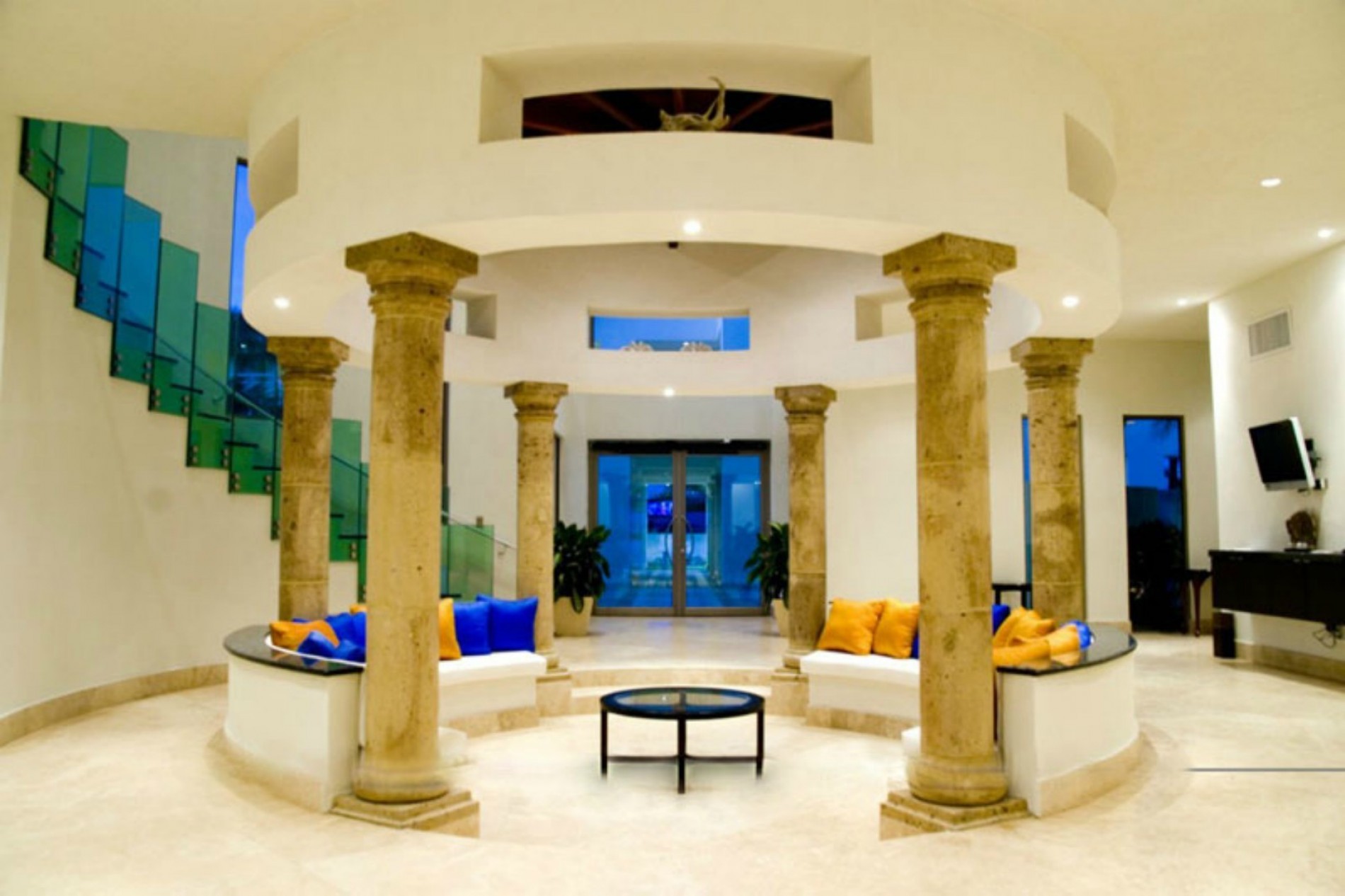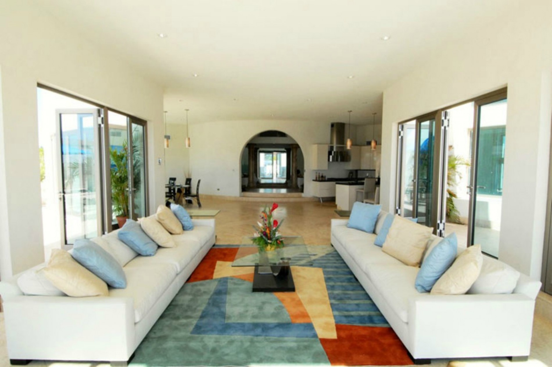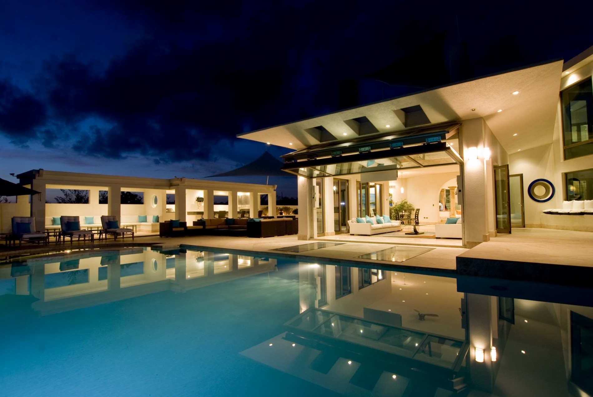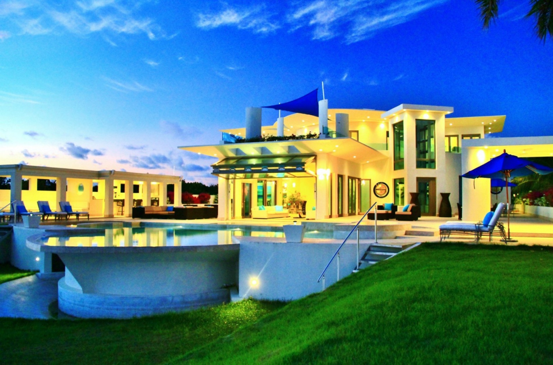 Defined by clean lines and a striking architectural design, this brand-new pristine property looks out upon the Caribbean Sea through crystalline expanses of glass. An interconnected open design of over 25,000 total square feet allows for a seamless flow of the interior spaces. Domed ceilings, honey onyx doors, and a cobalt-glass spiral staircase are among the unique elements.