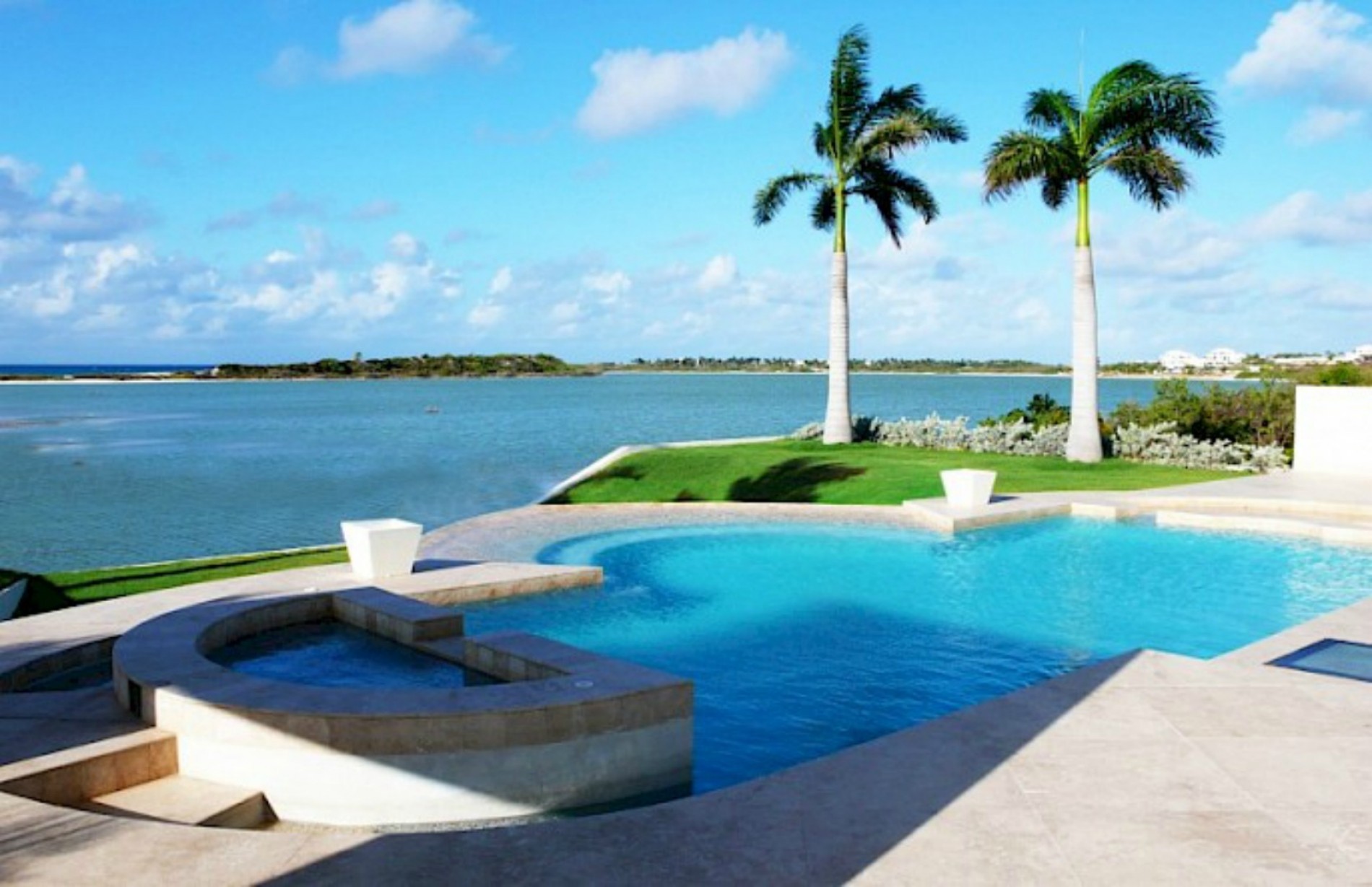 Past Modena’s double gated entrances there is over 10,800 square feet of indoor living space and 18,000 square feet of outdoor living space. Lounge beachside in a private cabana, enjoy outdoor movies, play tennis at Modena’s private court, enjoy the home’s lounge & bar, or simply sit poolside and soak up the sun. The villa boasts green & gold onyx doors, Caribbean contemporary furnishings, private beach access and a lovely guest house. Views of the crystal blue sea of Cove Bay are abundant from the private patios and balconies throughout the house.