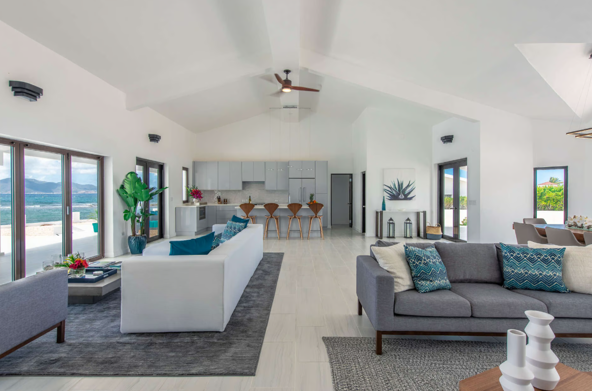 A breathtaking, palm-lined walkway greets you as you enter the property and are at once transfixed by the unobstructed views of St. Martin and the shades of cerulean Caribbean Sea that beckon you.