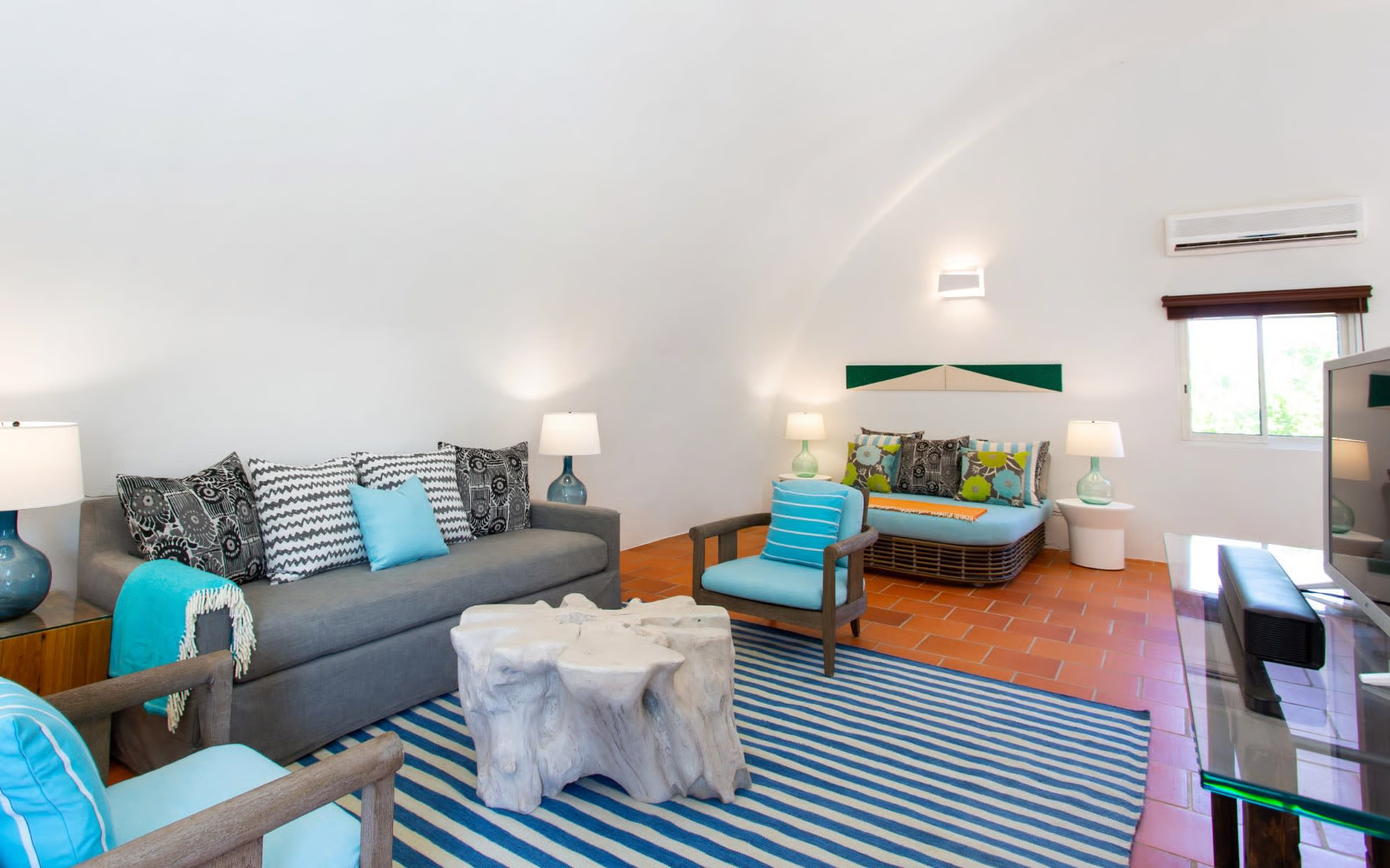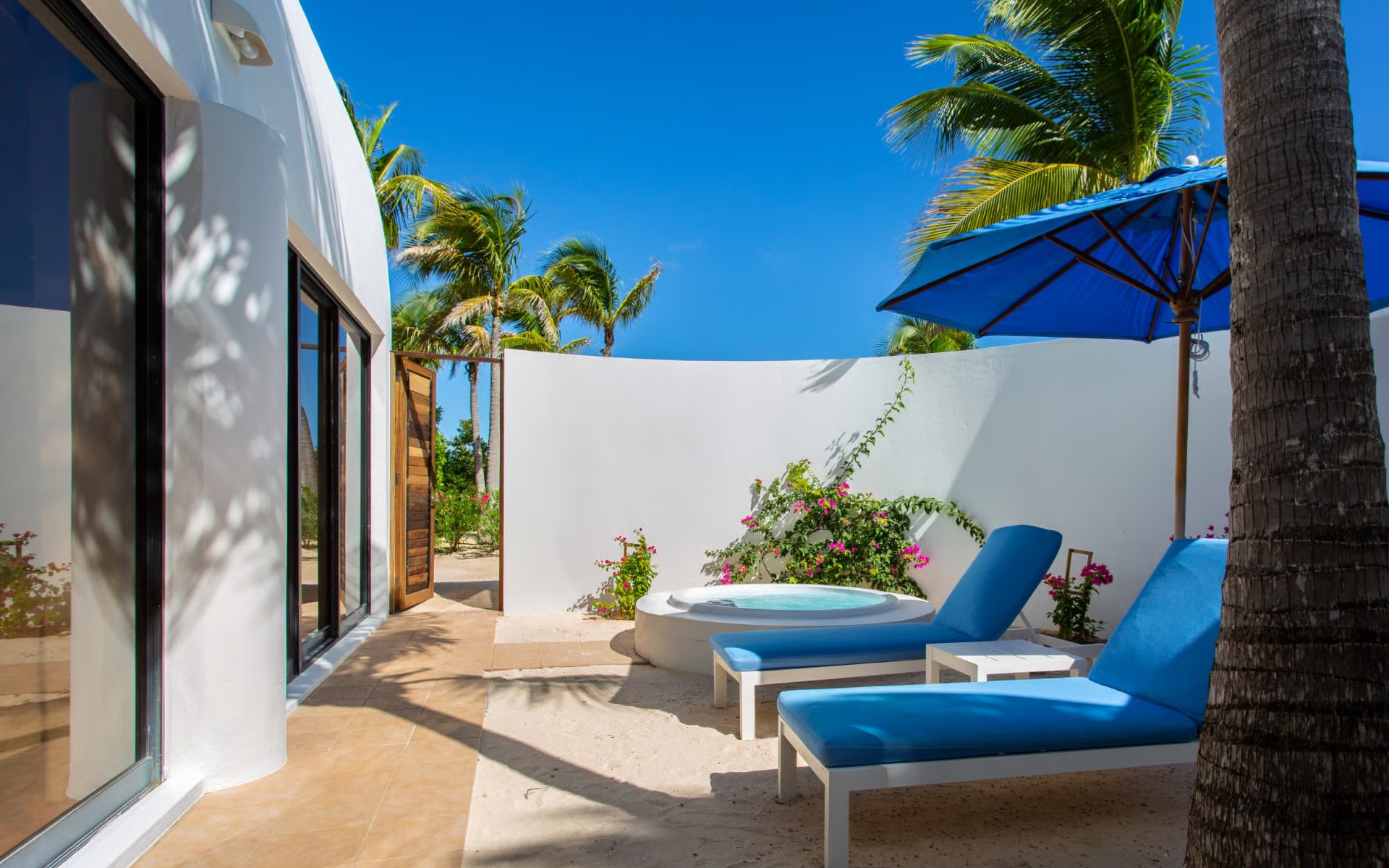 The Petit Topaz is an intimate villa with a king bed and bathroom downstairs and a living/dining area with kitchenette and day bed in the loft upstairs. Private courtyard with lounge chairs and jacuzzi. Steps to the beach, with access to a private swimming pool and shared use of tennis/basketball courts, gym, kayaks, snorkel gear and beach furniture. Daily maid service, continental breakfast and concierge service included. Perfect for a couple, friends or a small family.