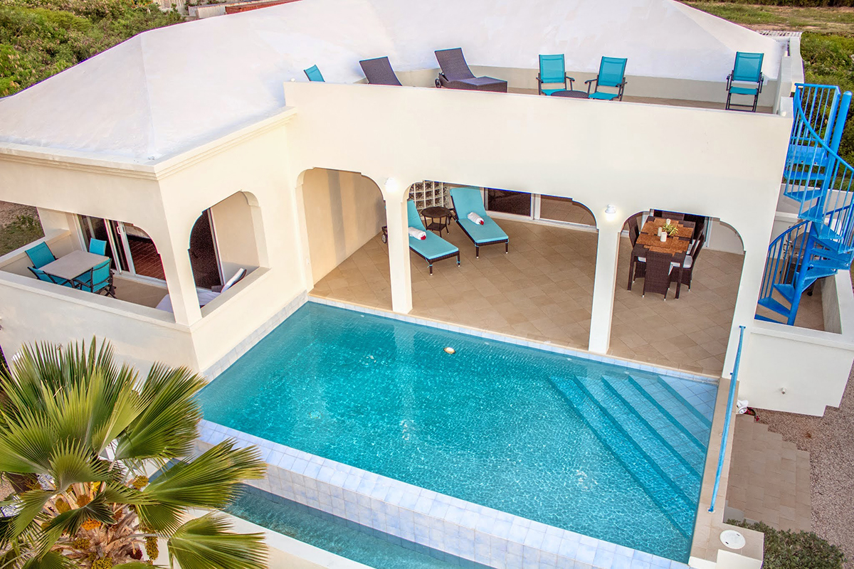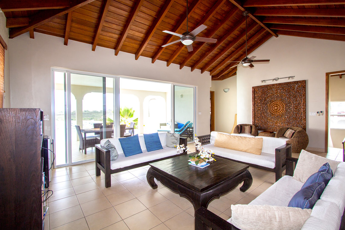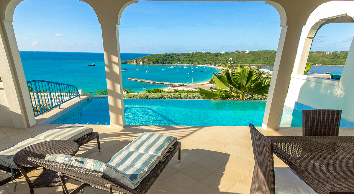 Situated on Back Street for viewing Sandy Ground Beach and the harbour, this 3BR/3.5BA home features breathtaking 360 degree views, an upper level infinity pool and authentic Thai design, furnishings and art.