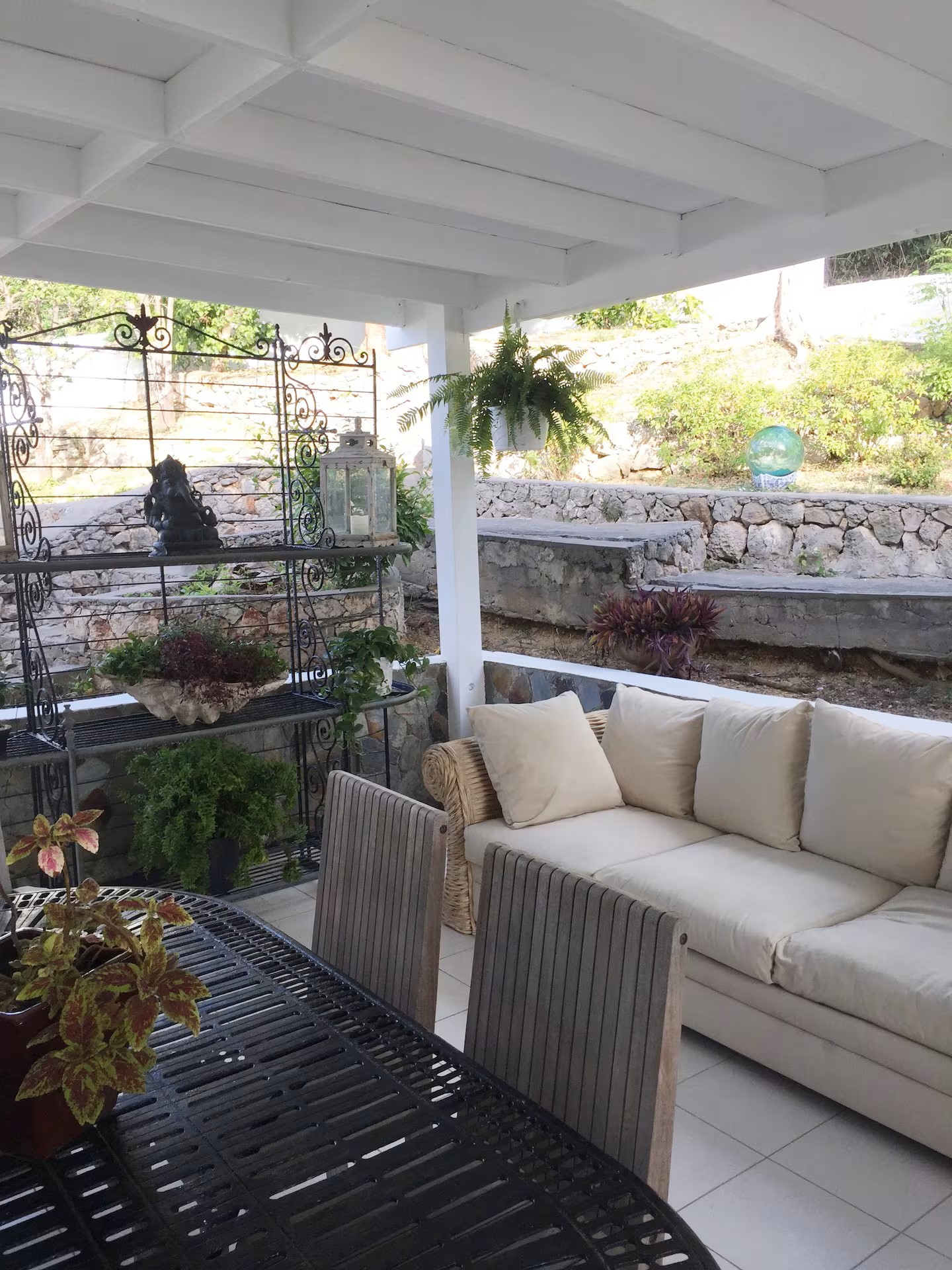 Seachelles Cottage is tucked into the hill as you go down to Sandy Ground beach and village. It is in a protected green space with lots of privacy. Only a 5 minute walk to Sandy Ground beach and a few minutes more to restaurants and bars.