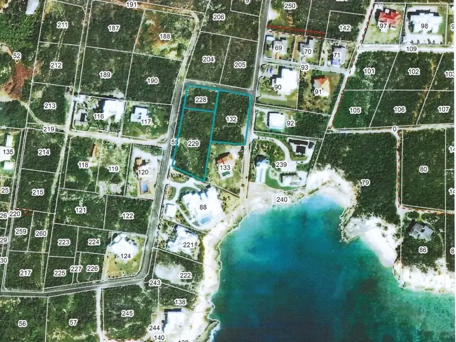 The adjoining parcels #228, comprising one quarter of an acre, and #132, comprising 0.5 acres, are also available for purchase. All three parcels could be bought as a 1.5-acre enclave, ideal for a housing development.