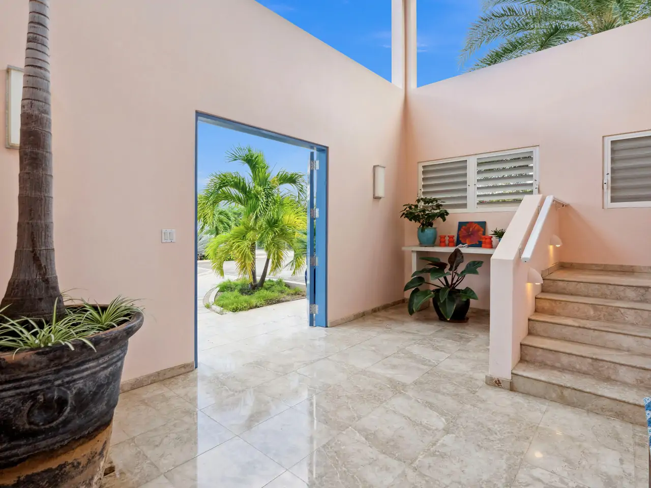 While the original construction dates back to 1977, when the whole neighbourhood operated as a resort, the current layout and specifications follow the extensive reconstruction and remodeling carried out by the current owners between 2013 and 2015, which included a new concrete roof, new aluminium windows and sliding doors as well as cabinetry and interior doors by Paul and Oris Smith, counters and sinks in Corian and floors throughout the entire property in native stone.