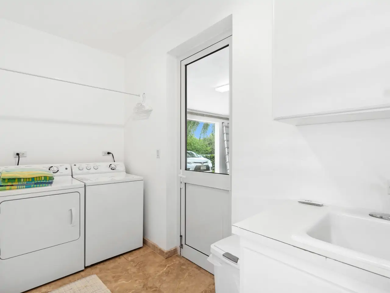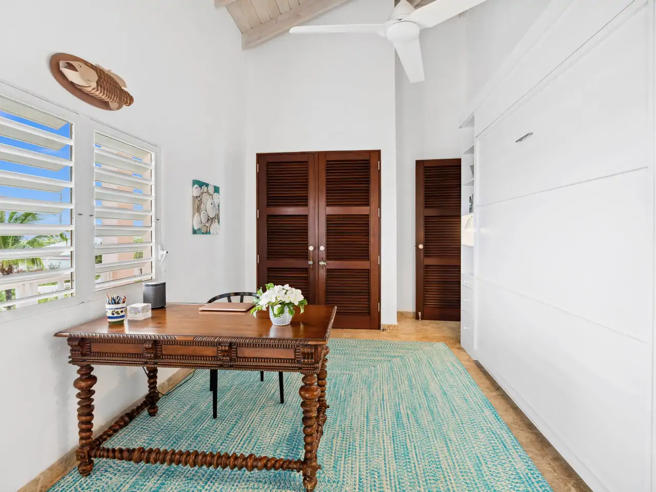 The ground floor quarters have two guest bedrooms with their private bathrooms en-suite, as well as a living and dining area and full kitchen with expansive deck. The large pool on the property is just a few steps away and is shared by only three homeowners.