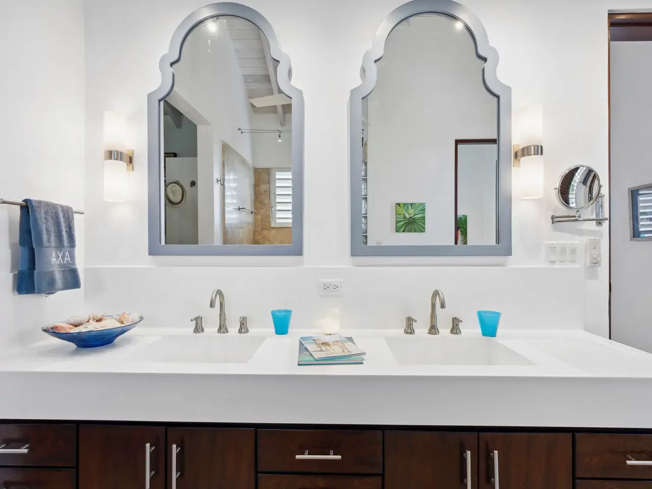 This luxury home for sale in Anguilla has been done up with impeccable taste and good sense, resulting in a practical, multi-purpose property teeming with panache.Part of a self-contained colony of houses right on the edge of the bluff on the lower part of South Hill, the villa comprises approximately 7,000 square feet laid out across two levels, with the main living quarters set up in the upper level to profit from the exceptional view.
