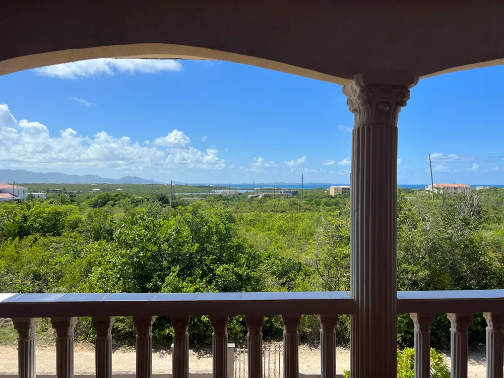 La planta principal cuenta con una cocina/sala de estar/comedor de planta abierta renovada y un dormitorio en suite, mientras que la planta superior alberga cuatro dormitorios, dos en suite y dos que comparten un cuarto de baño. Disfrute de las impresionantes vistas del océano y de San Martín. Además, el tercer nivel ofrece un espacio ideal para una oficina en casa.