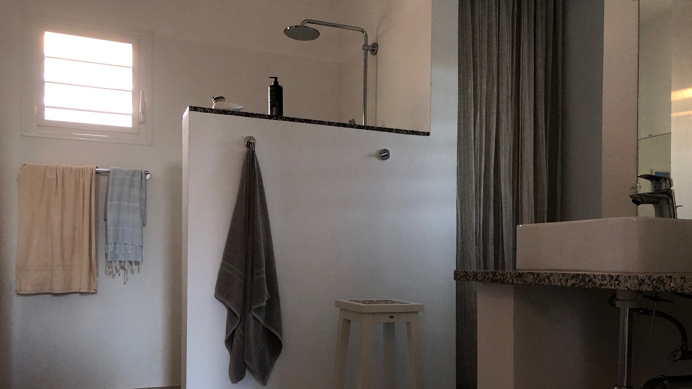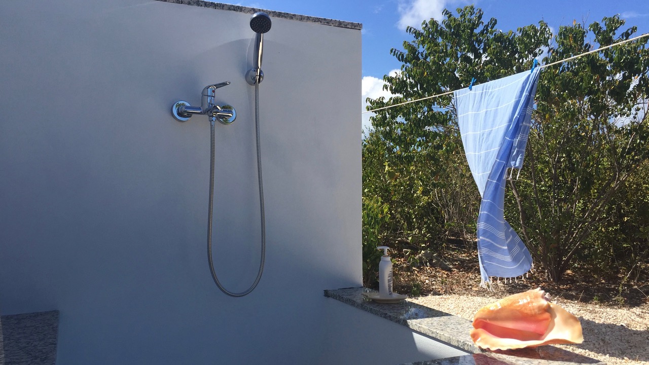 the south. It contains a kitchen and there is a shower house (bathroom) a few steps
