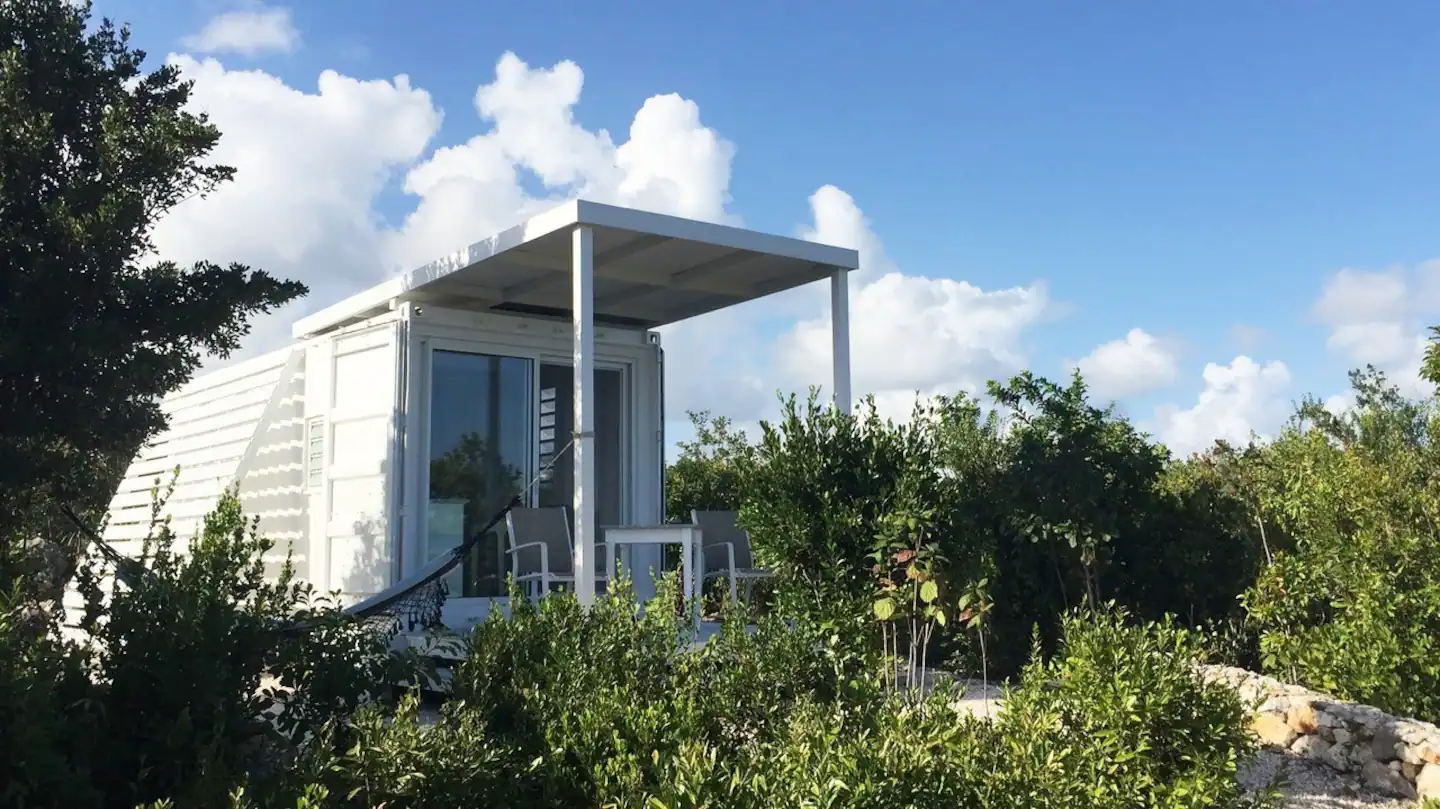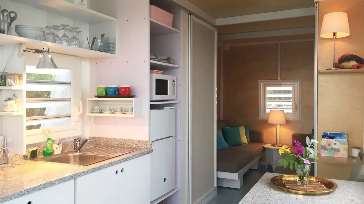 The “Tiny House“ concept guest house placed in the middle of a nice garden is built to the