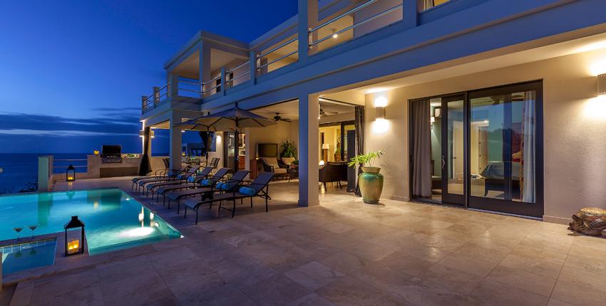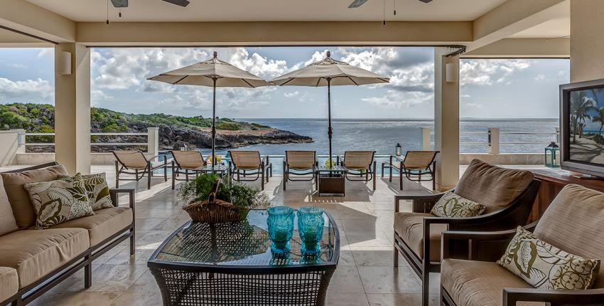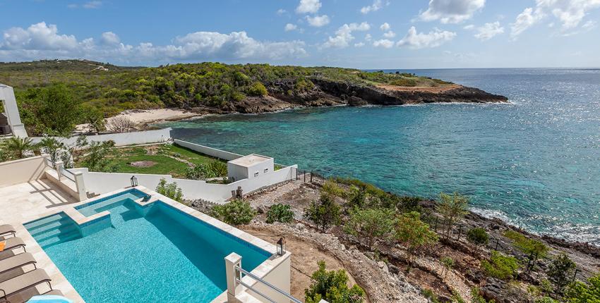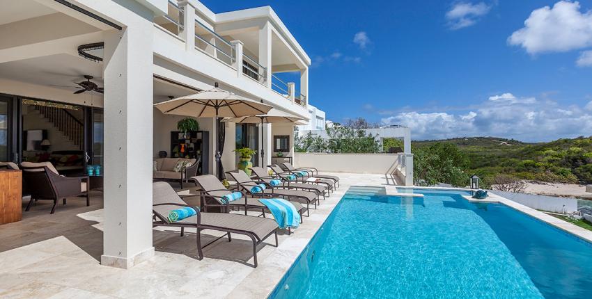 A pristine blue pool, overlooking the waves breaking on the reef below, features a seated jacuzzi section for the ‘colder’ nights in Anguilla. Right behind the pool you will find a luscious outdoor living room decked out with plush, comfy seating and an outdoor television!