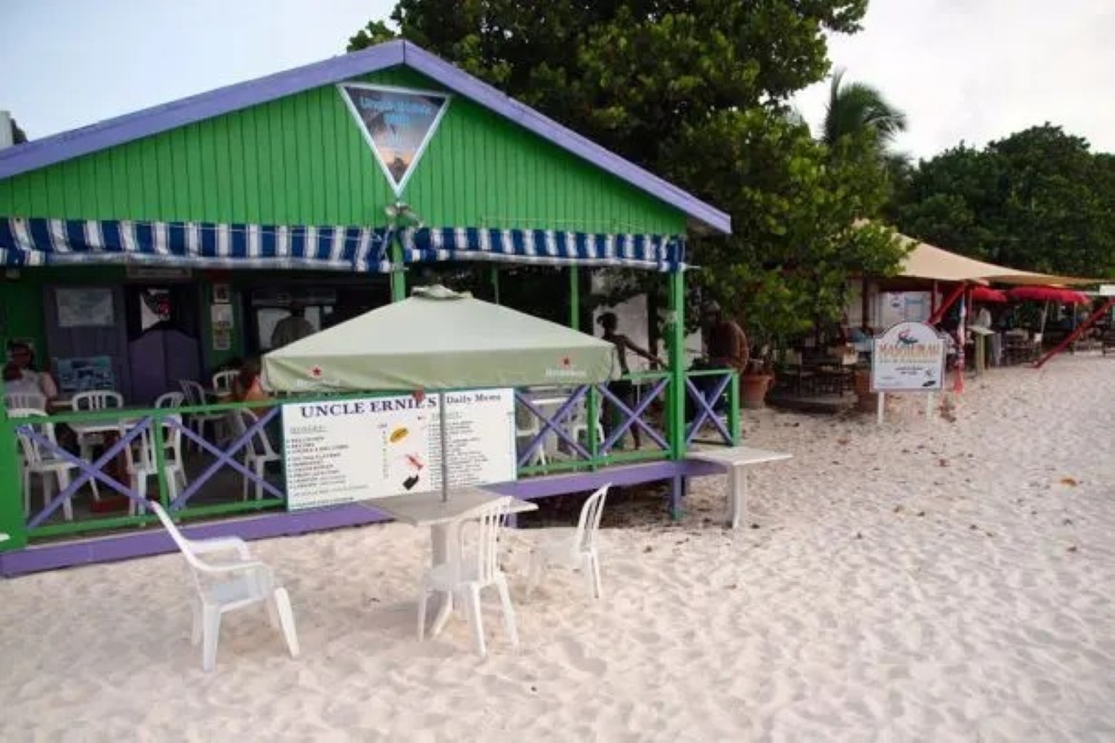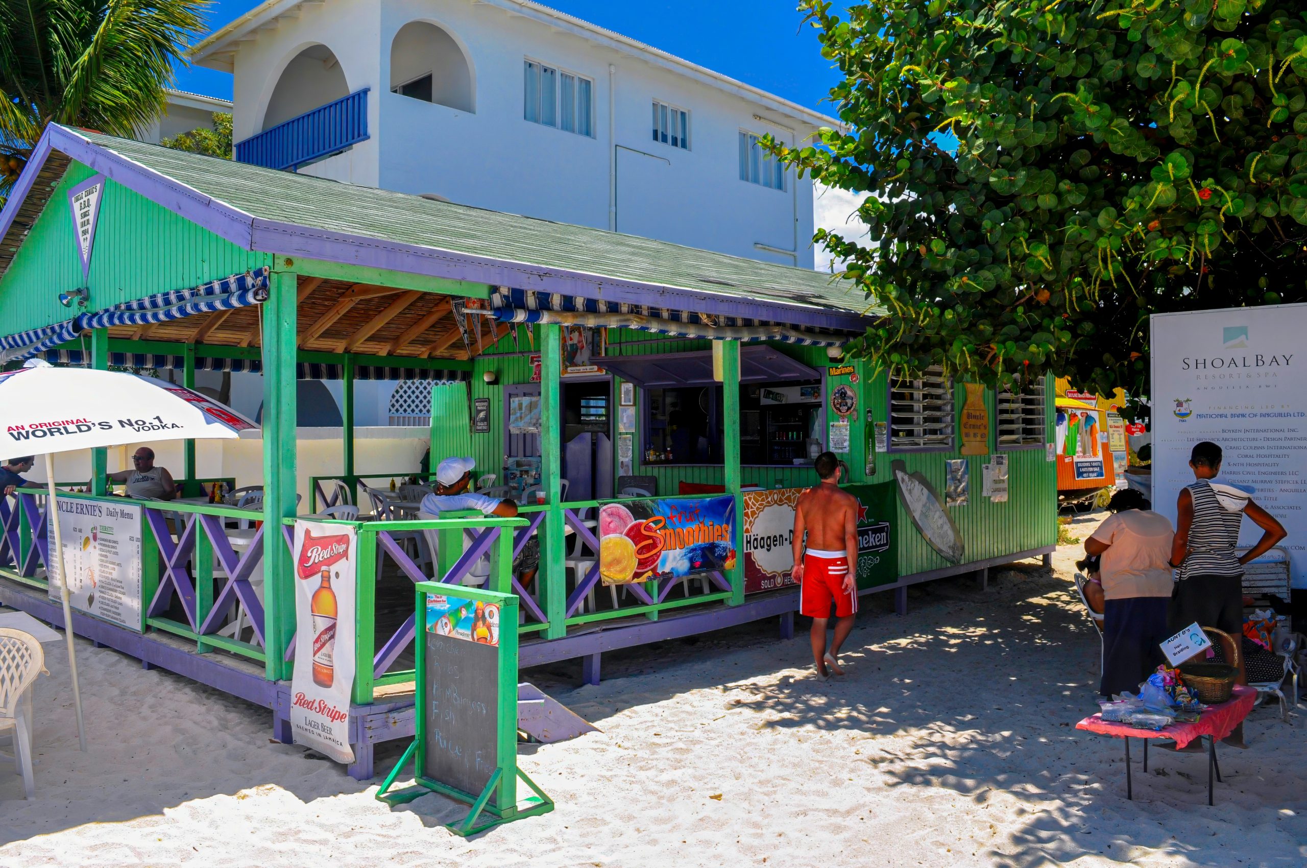 Uncle Ernie’s Shoal Bay Beach Bar is one of the best known eateries in Anguilla. It is proudly situated at the end of the main road to Shoal Bay East Beach; One of the most beautiful stretches of sand in the Caribbean and the most popular in Anguilla.