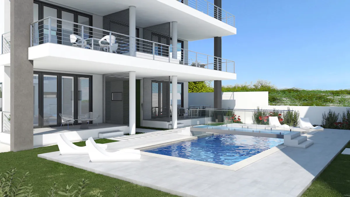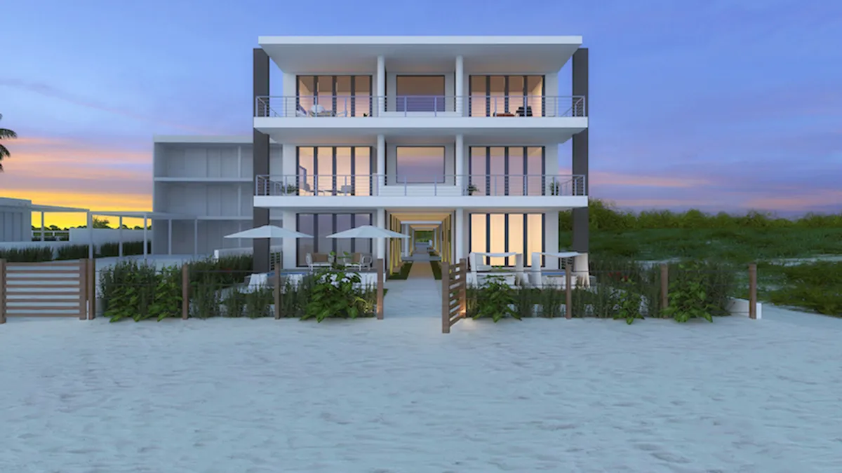 Hay 3 edificios cada uno con 4 condominios. Edificio A es el que directamente en la playa y los edificios B y C siguen detrás. Todos los condominios tienen concepto abierto de cocina de lujo, sala, comedor y barra de desayuno. El nivel superior de cada edificio es el de 3 dormitorios y que son capaces de añadir un jardín en la azotea se desea. Nivel medio son uno o dos dormitorios y los niveles inferiores son las unidades de un dormitorio.
