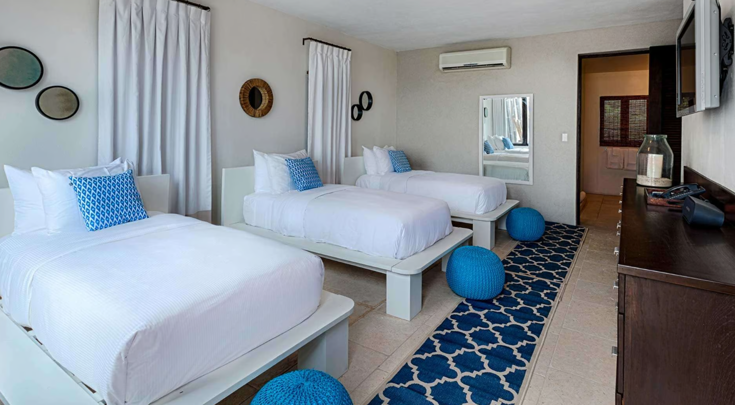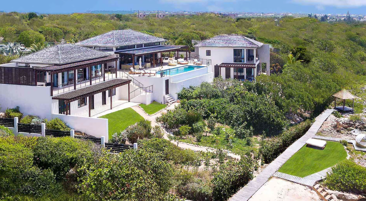 There are two master suites, a junior master suite with an adjoining garden view bedroom, and two more ocean view bedrooms for a total of six bedrooms. An open, modern kitchen with a large eat-in island and a fully equipped media room make this property a dream destination for at least two families with children. Add in one of Triton’s sister properties— Odyssey or Anani at Kamique— to add four or eight bedrooms to accommodate larger groups or small parties.