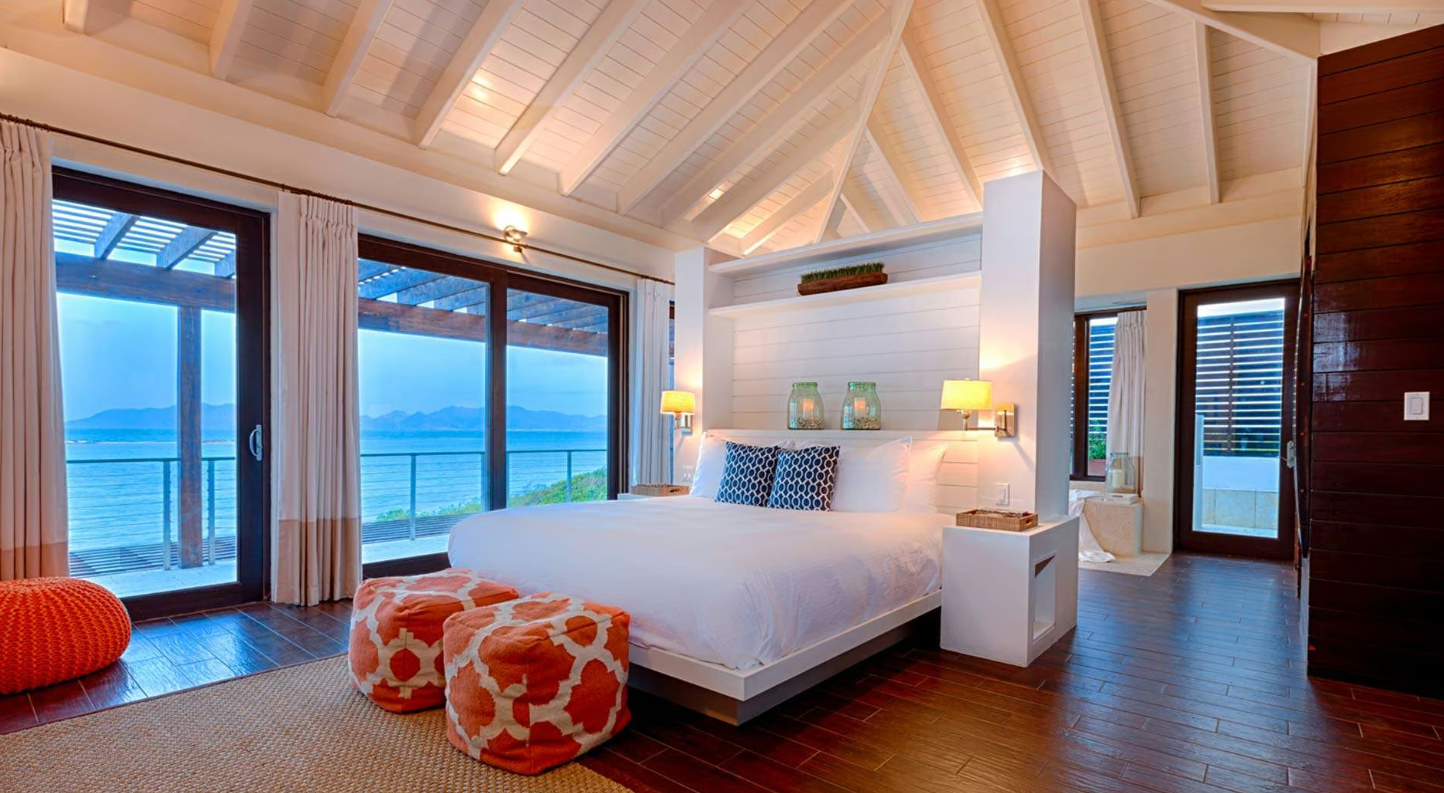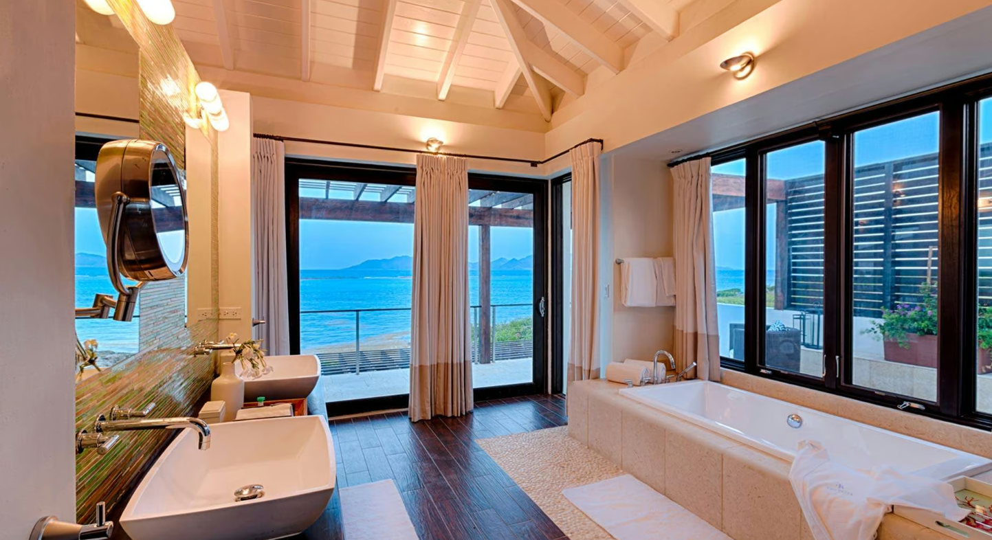 Triton Villa is a gorgeous six-bedroom villa overlooking the shimmering Caribbean, with amazing views of St.Maarten (and St. Baarth’s in the distance). Fortunate guests have 190 feet of beach and coastline directly behind the property to enjoy. Though no beach is private in Anguilla, this is as close as it gets. Enjoy a movie and a firepit in the evening, play a game of bocce, or simply enjoy by the beachfront bar and entertainment area. If you feel like working out, Triton has a gym and is also directly inside a protected coral reef, where you can see a great variety of island sea life. If you do choose to leave the property, you may visit one of Anguilla’s 33 world-renowned beaches or restaurants as «one of the best foodie destinations in the Caribbean».