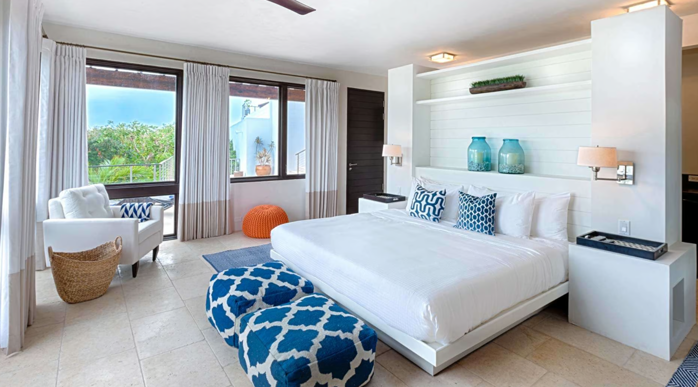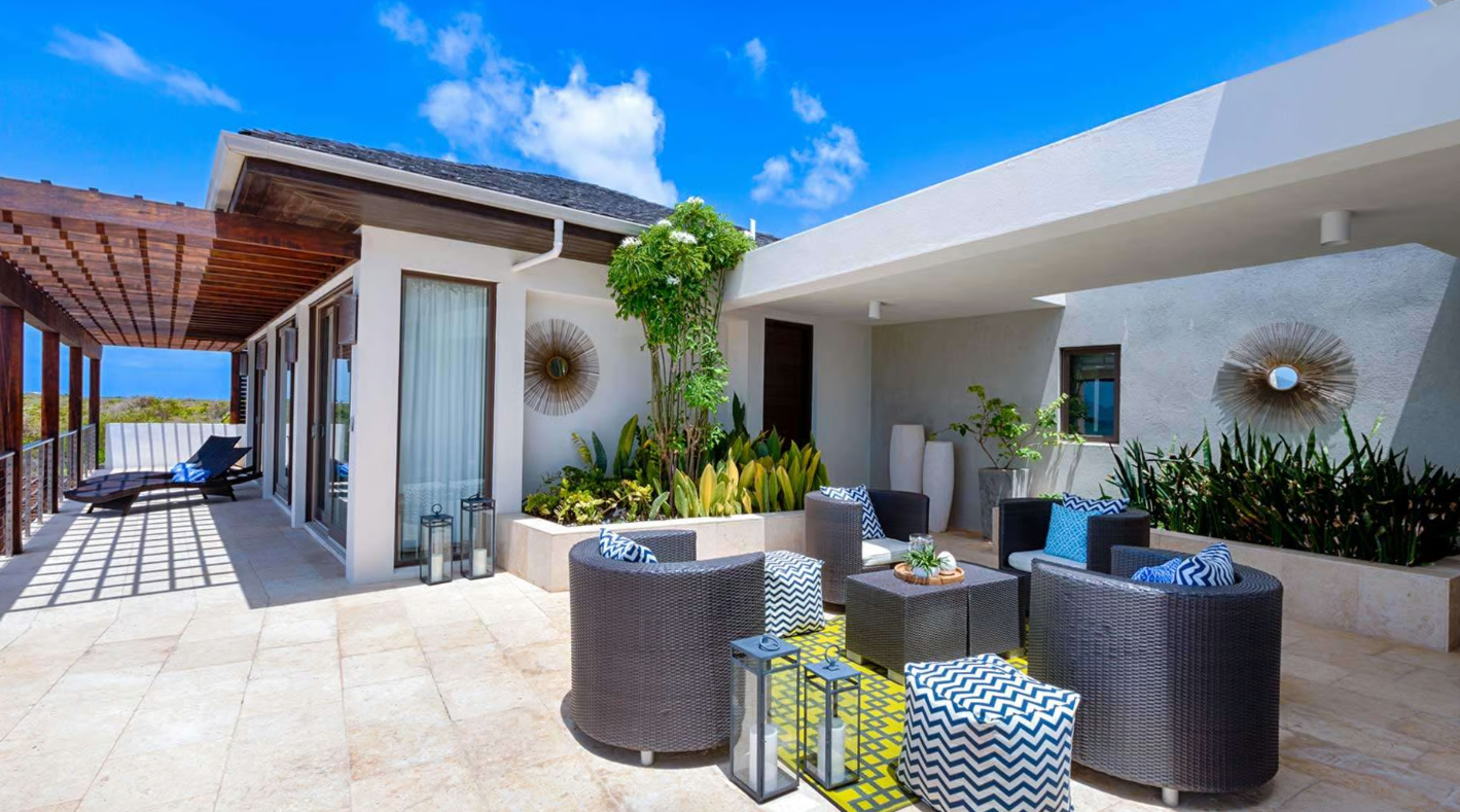 Triton is one of three luxury villas situated in Lockrum Bay on the Kamique Estate. Distinctly modern and West Indian at the same time, Triton offers multiple seating areas (both covered and uncovered) by the pool for lounging, dining, and experiencing the jaw-dropping Anguillan oceanfront view. The interiors are modern yet inviting, with colorful island accents that accentuate the stunning location and the surroundings framed by large windows throughout. Exposed beams and white ceilings give an open and airy feel, with spacious bedrooms and living areas oriented to the views.
