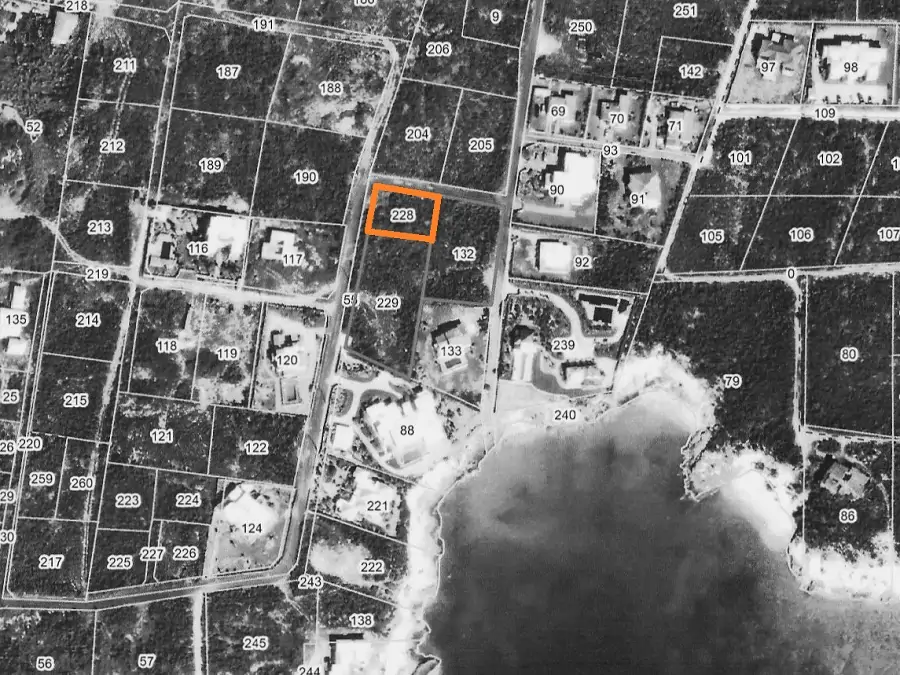 Sitting right on the edge of a secondary paved road that runs south from Little Harbour, the property (parcel #228 on the map) forms a perfect rectangle, with the broadside running east to west and both northern and eastern boundaries flanked by the road. Consequently, access is super easy, as is connecting to the power grid and every other public service available on island.