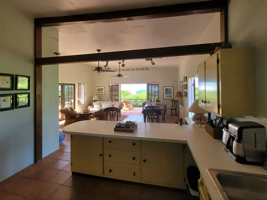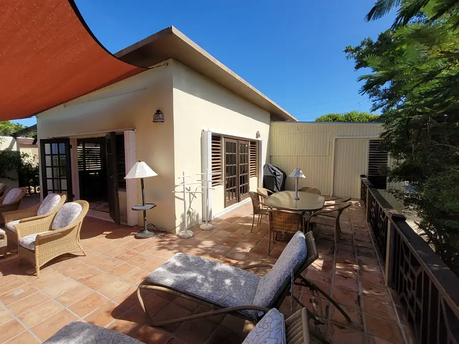 This home for sale in Anguilla sits on a privileged 0.88 acres of land in the popular area of Cul de Sac. Comprising two separate single-storied buildings, Bayberry and Chinaberry, the walled property features a total of three bedrooms and three bathrooms, with two individual kitchens, one in each house, and a connecting open-air courtyard between them.